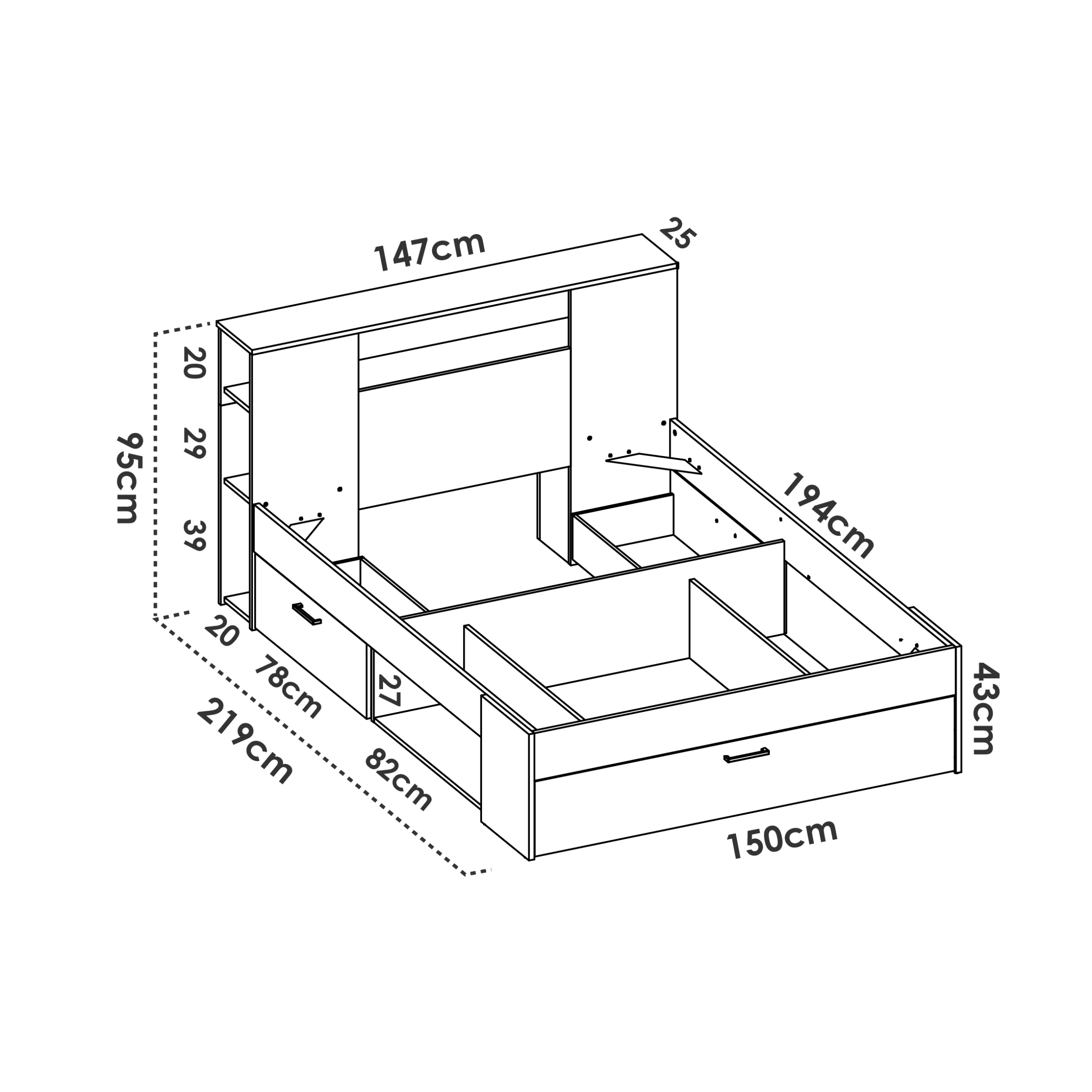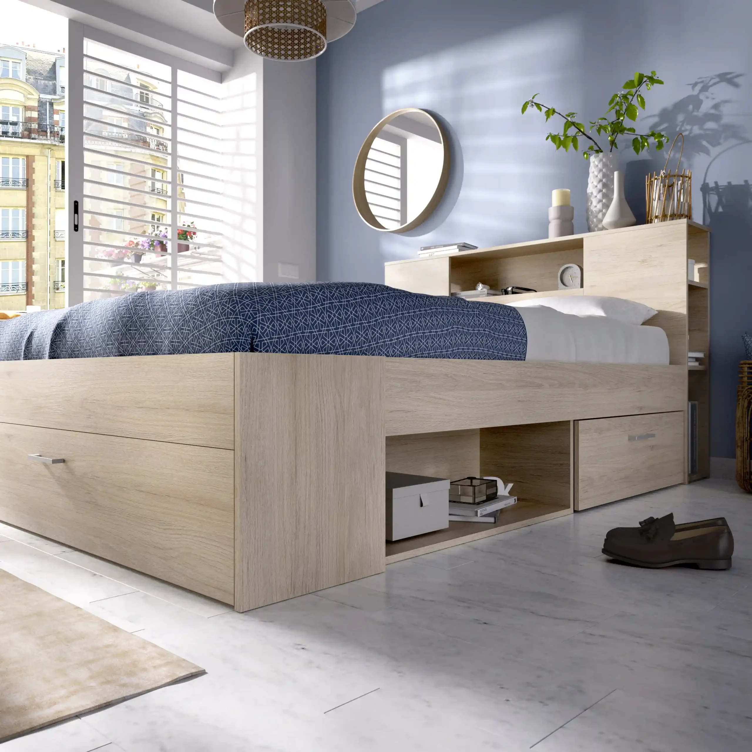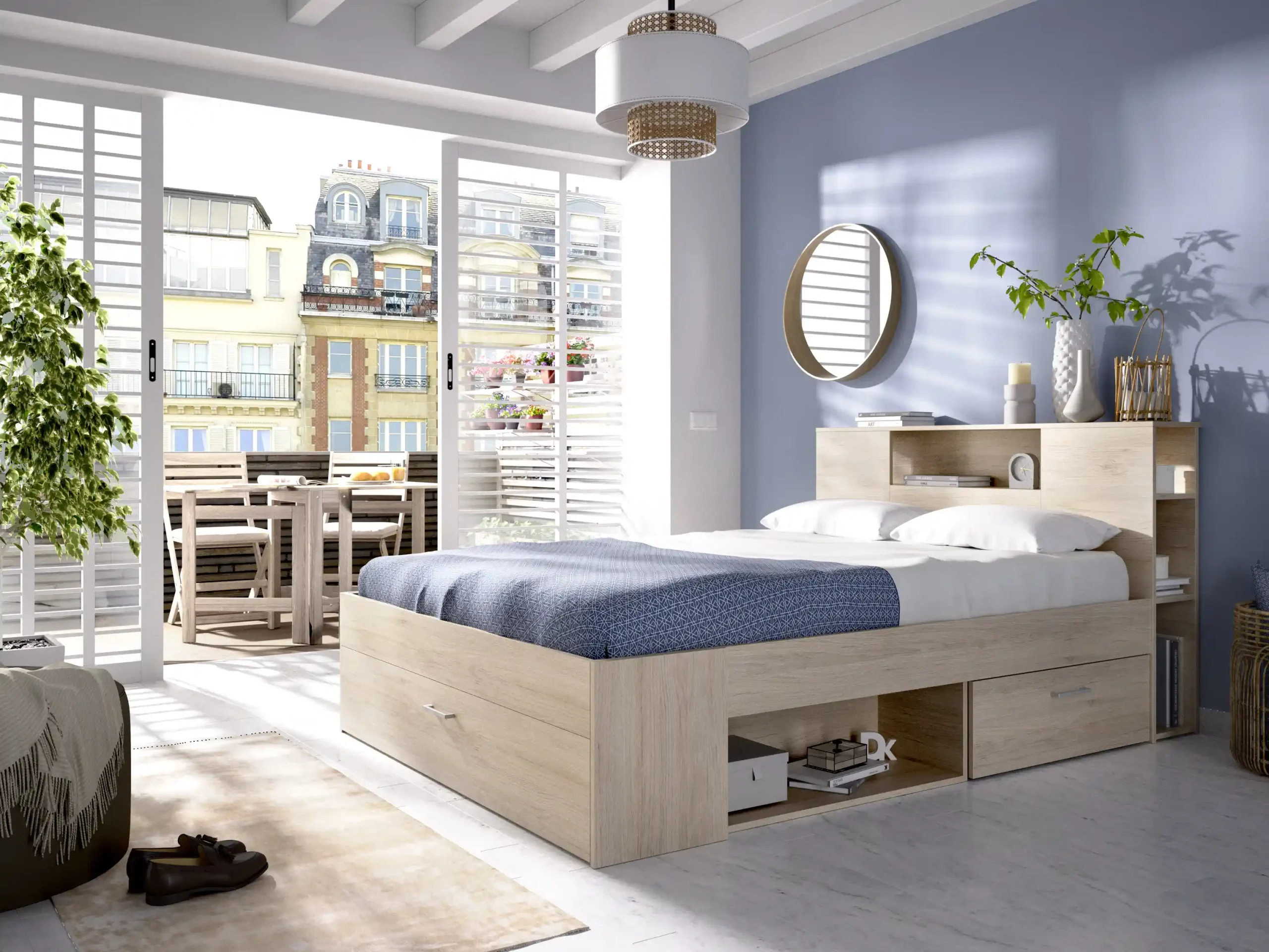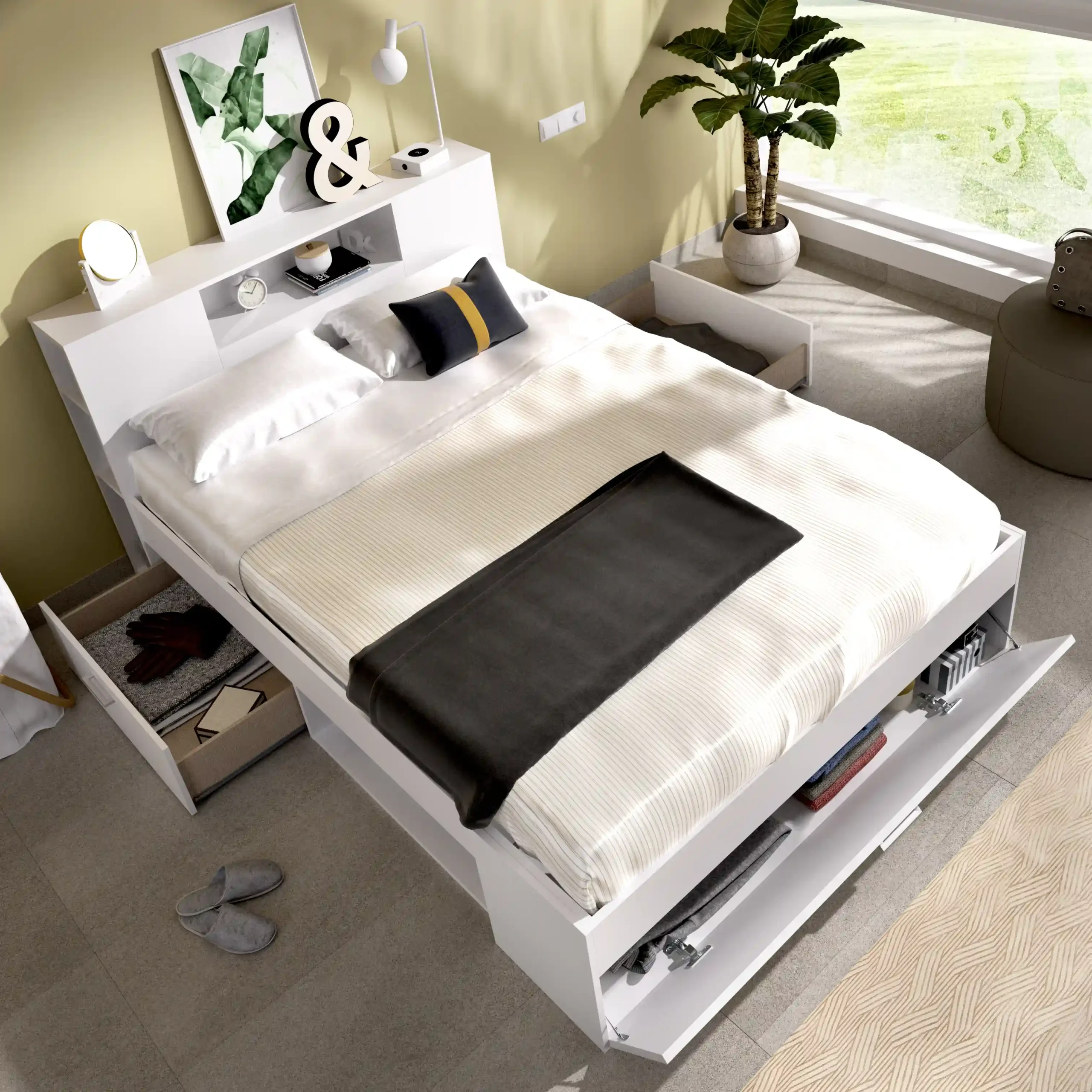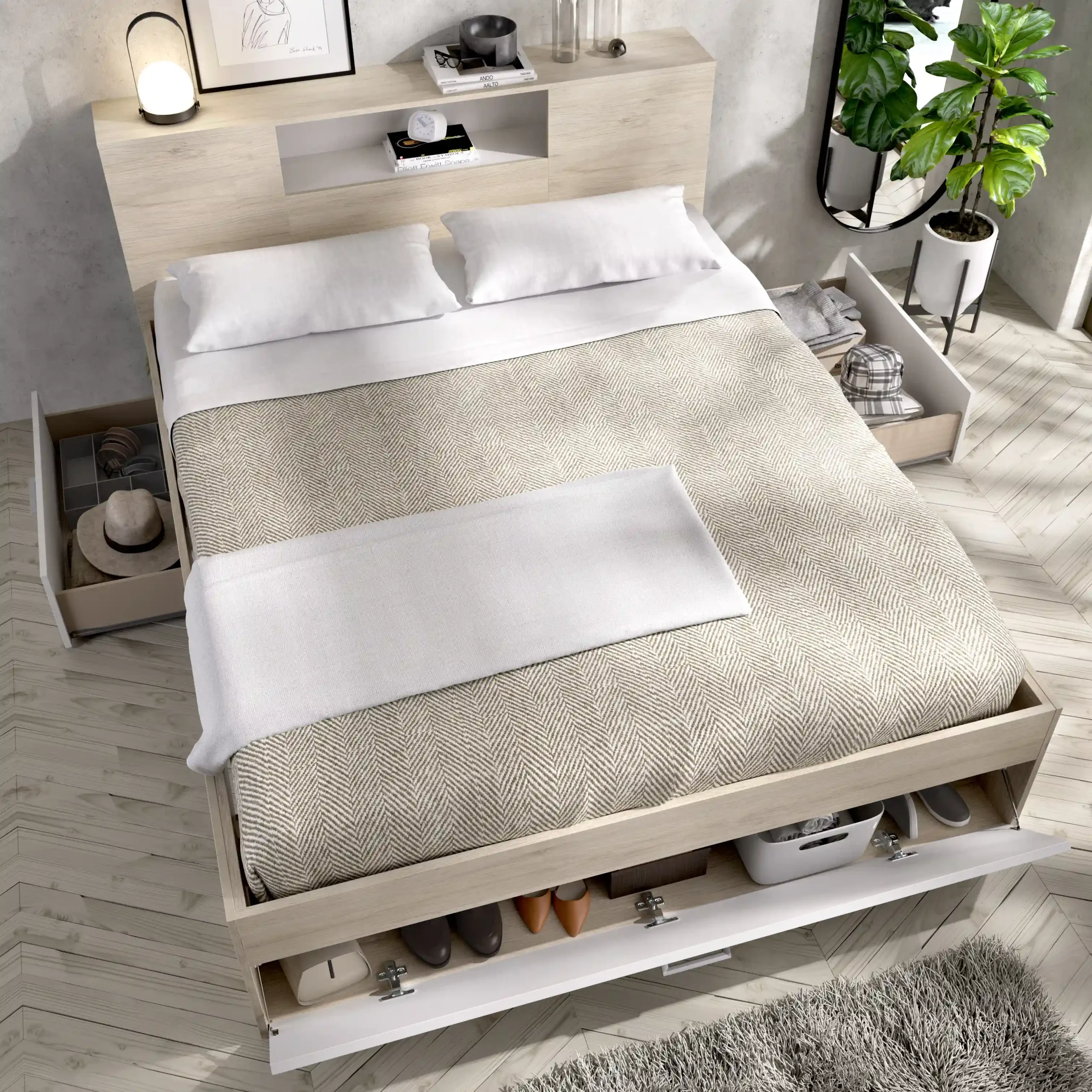 Cama de matrimonio con cajones y cabecero Lanka 135-140X190 cm