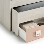- Ruedas ocultas para la cama inferior y para los cajones.