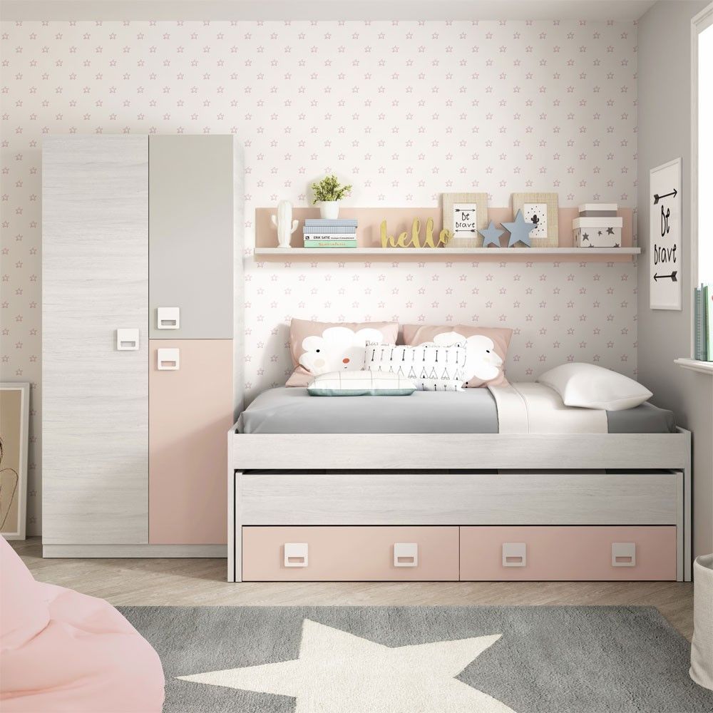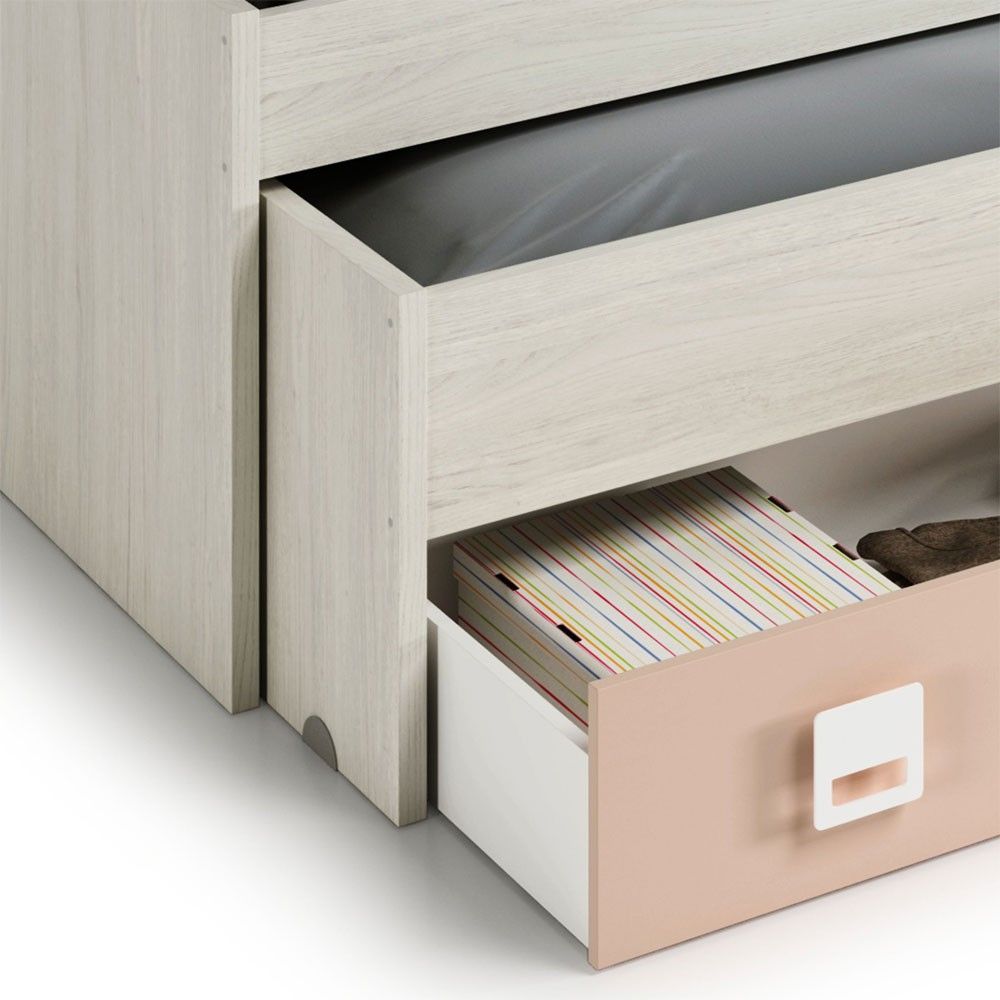 Descubre la cama nido doble New Nube en blanco Alpes y rosa, un diseño innovador que optimiza el espacio en tu hogar. Esta cama no solo es funcional, sino también elegante, adaptándose a cualquier estilo de decoración.