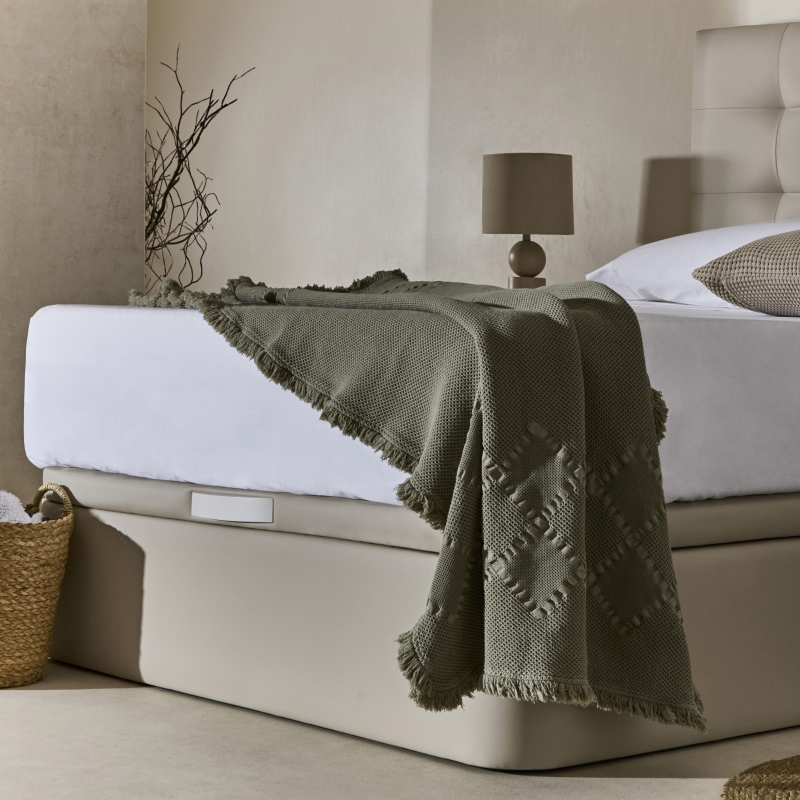 Fondo: El fondo está fabricado en MDF de alta densidad con un revestimiento textil, ofreciendo una superficie suave que protege los objetos almacenados y facilita la limpieza. La altura total del canapé es de ±36 cm, con cajón útil de ±29 cm.