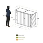 La doble puerta frontal y la rampa facilitan el acceso al interior, y un sistema de bloqueo robusto asegura la seguridad de tu contenido. El atractivo color antracita se integra perfectamente en cualquier jardín o patio, aportando un toque moderno y elegante. Para una instalación óptima, asegúrate de colocarla sobre un terreno sólido y nivelado.