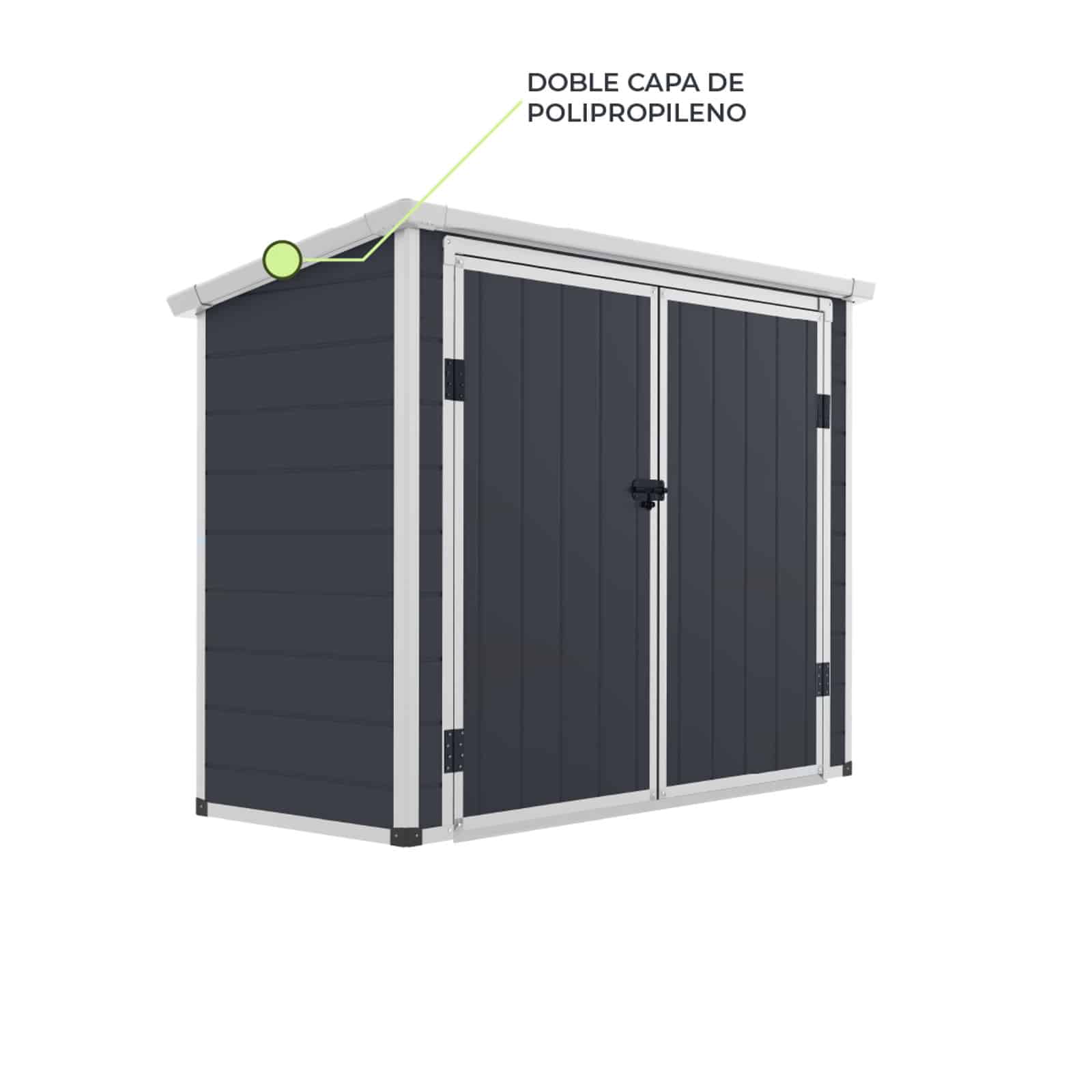 Techo inclinado para evitar la acumulación de lluvia y mantener tus pertenencias secas.
