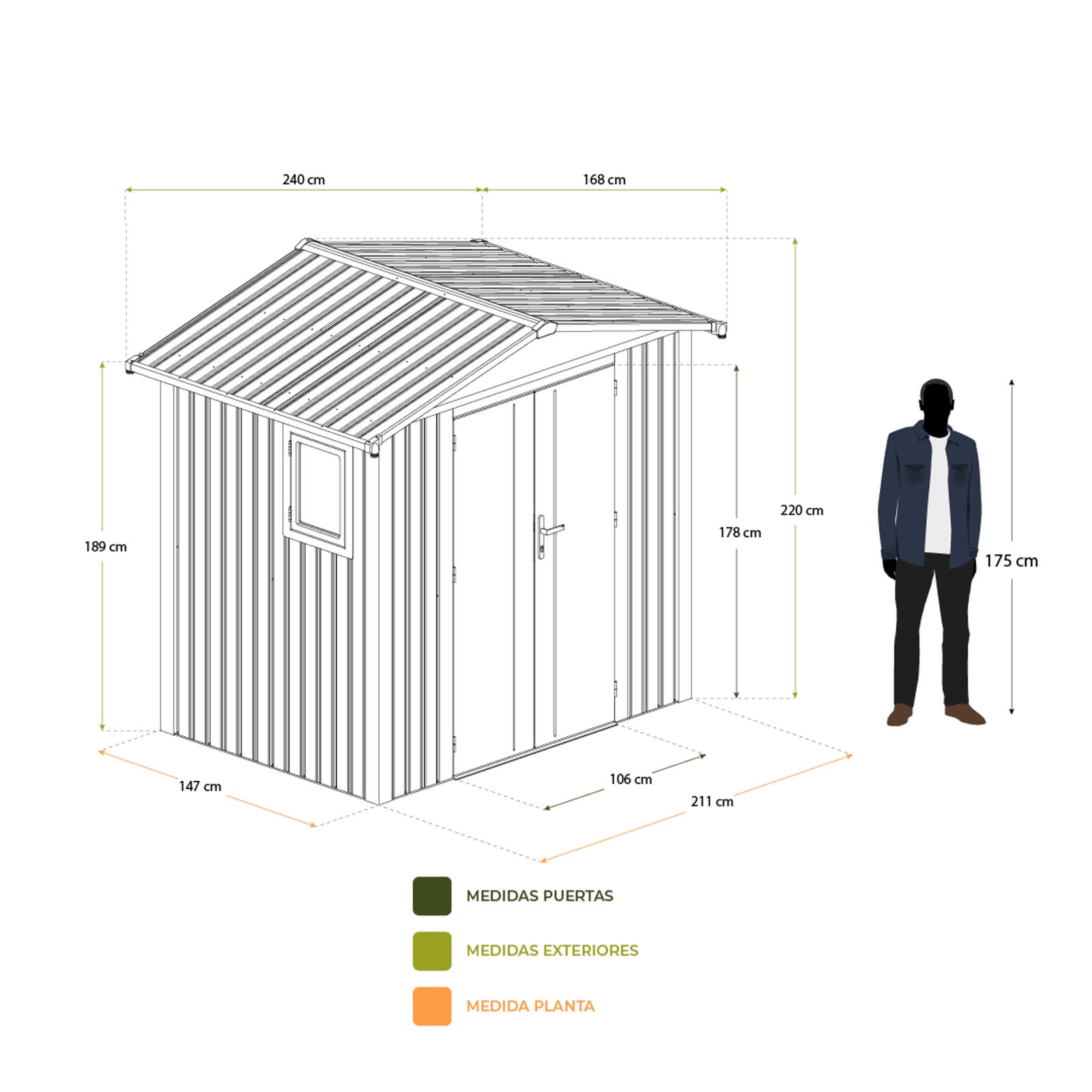 Caseta jardín metálica 240x168x220cm (4,03 m2) Grunewald silver grey