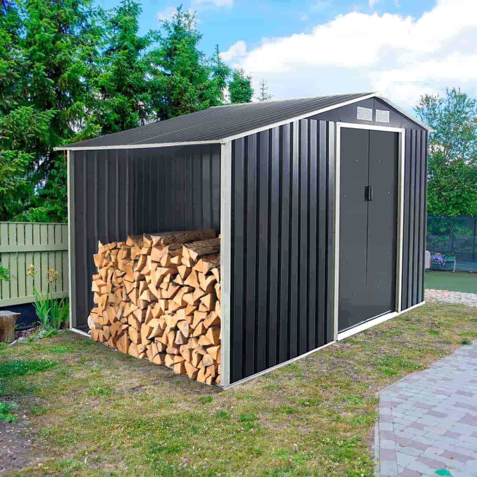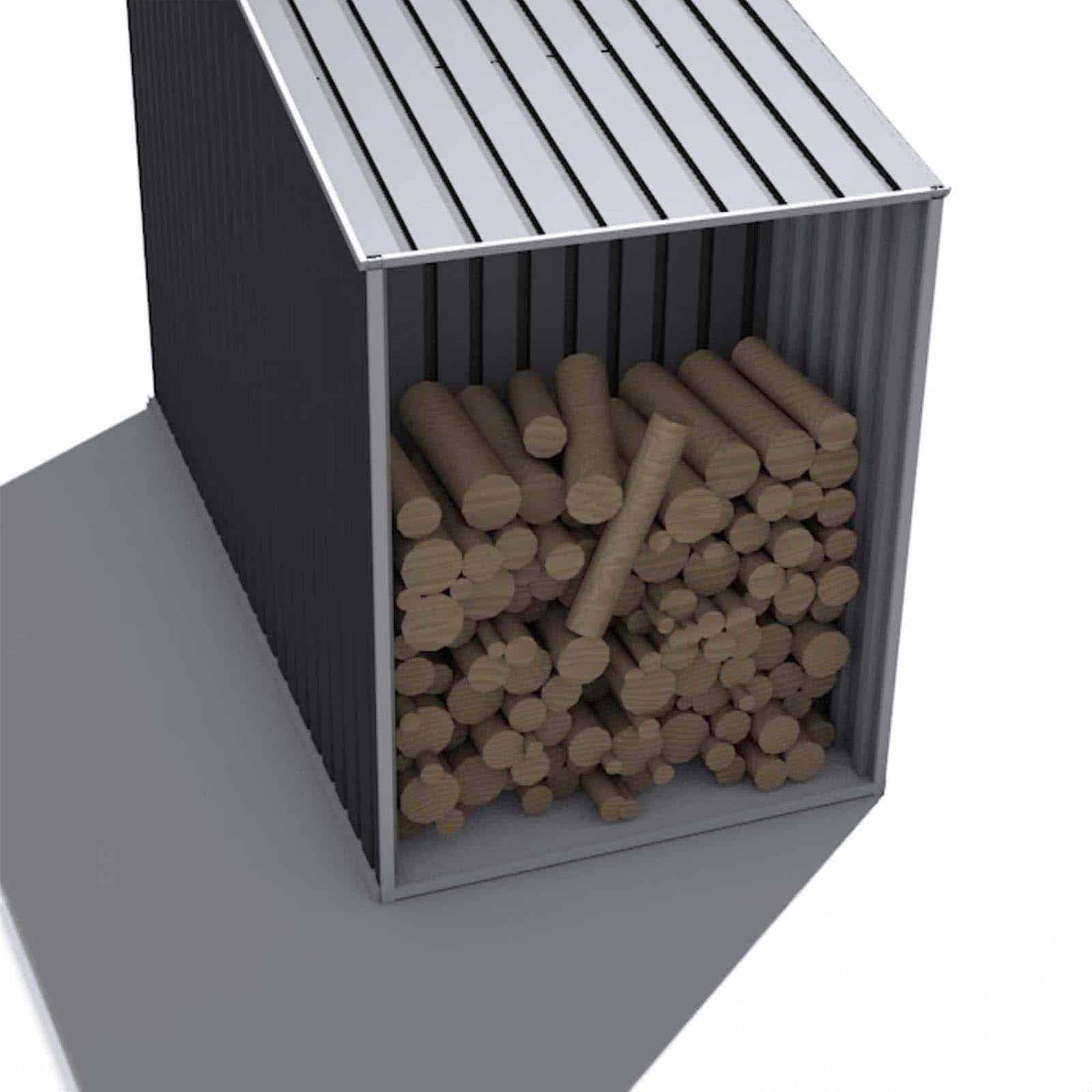 Caseta jardín metálica con leñero 278x127x195 cm (3,53 m²) Toronto gris