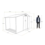 Para garantizar la seguridad de tu contenido, la puerta puede cerrarse con un candado (no incluido). Recuerda que para una instalación segura y duradera, es esencial anclarla a un terreno nivelado, evitando zonas donde el viento sople con fuerza. El espacio recomendado es de 140 x 300 cm.