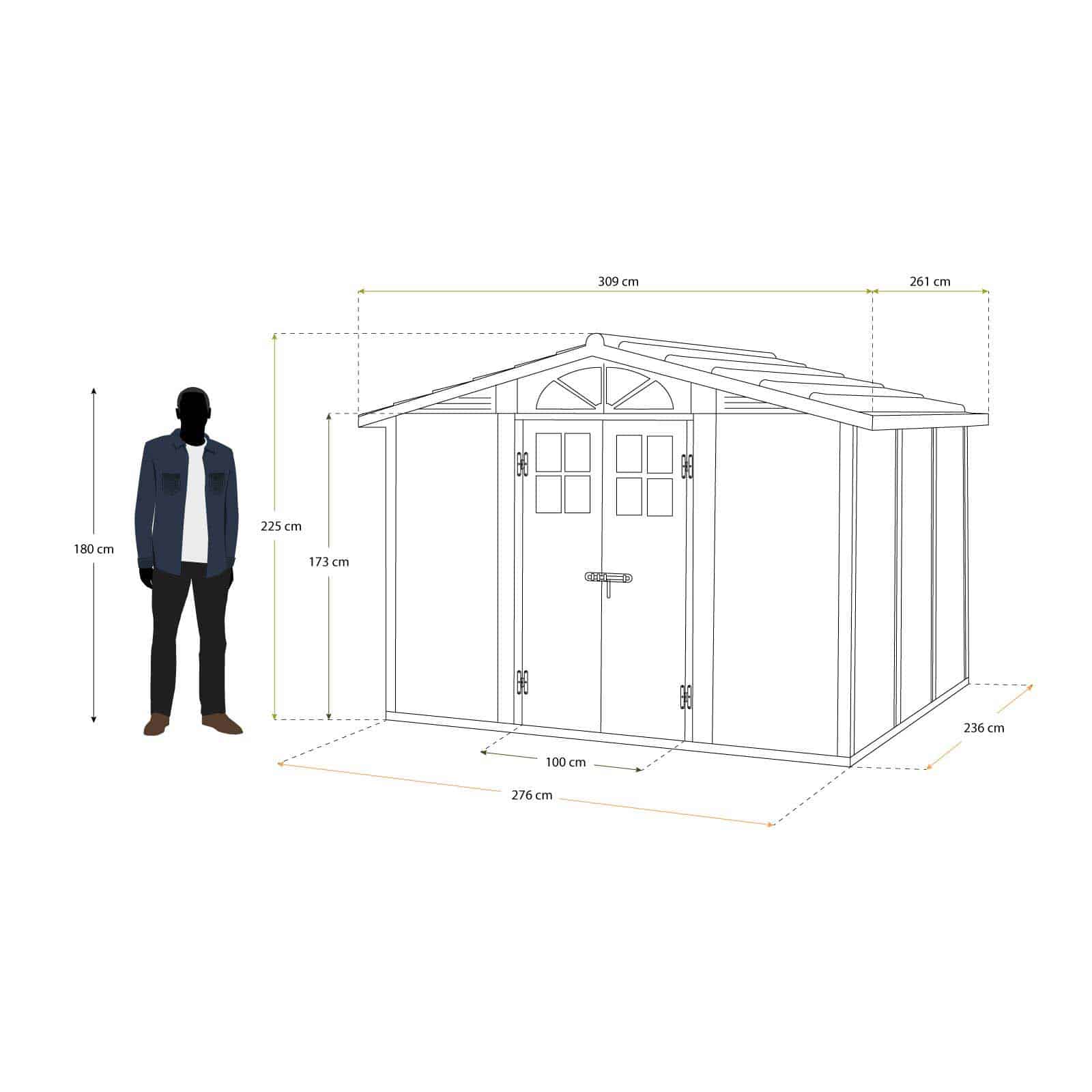Su mantenimiento es mínimo, solo se necesita limpiarla con una bayeta húmeda y un poco de jabón. Con dimensiones exteriores de 261 x 309 x 225 cm y una superficie utilizable de 8 m², la Tuscany Evo 280 ofrece un amplio espacio para guardar tus pertenencias al aire libre.