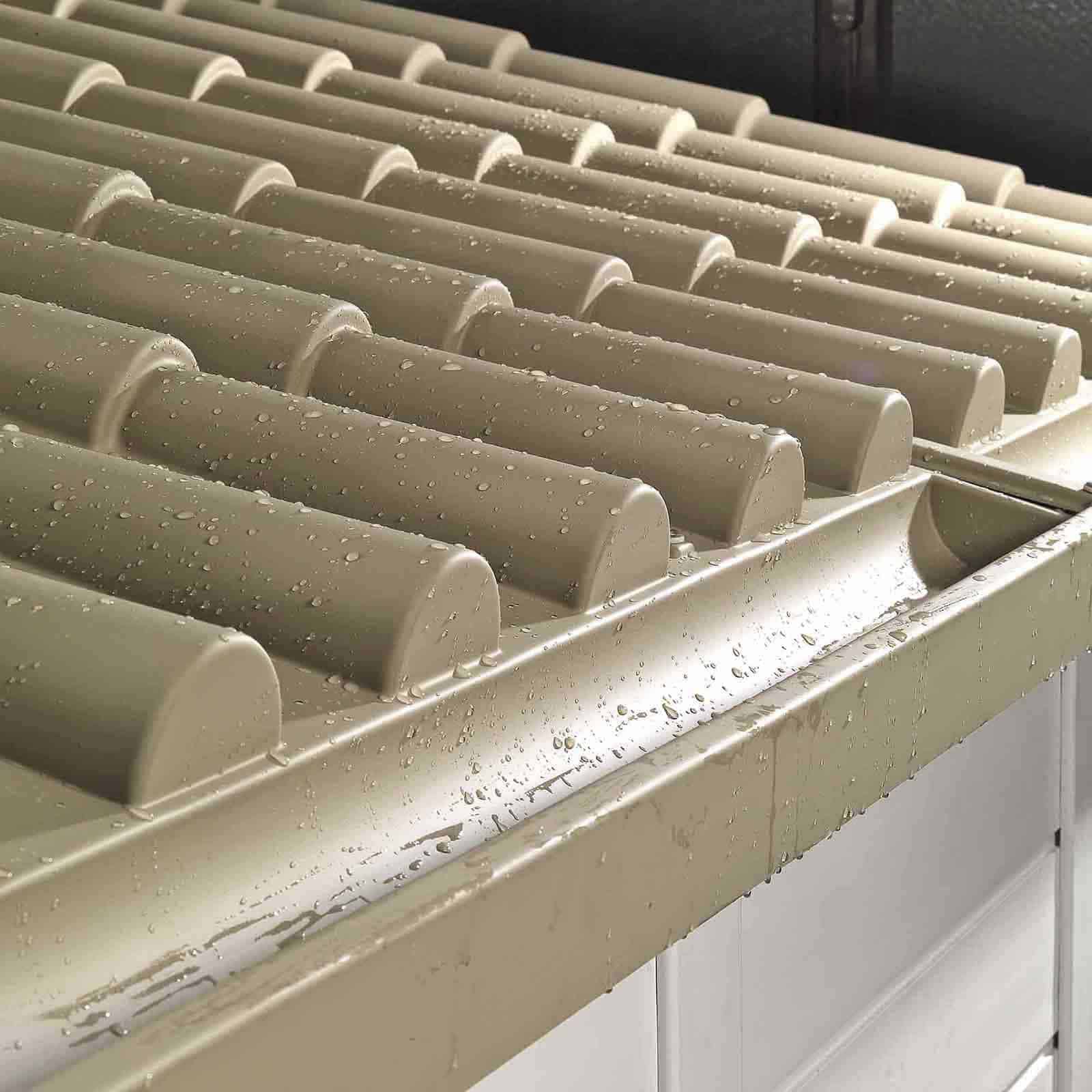 * Amplio espacio utilizable de 8 m² para guardar tus pertenencias al aire libre.