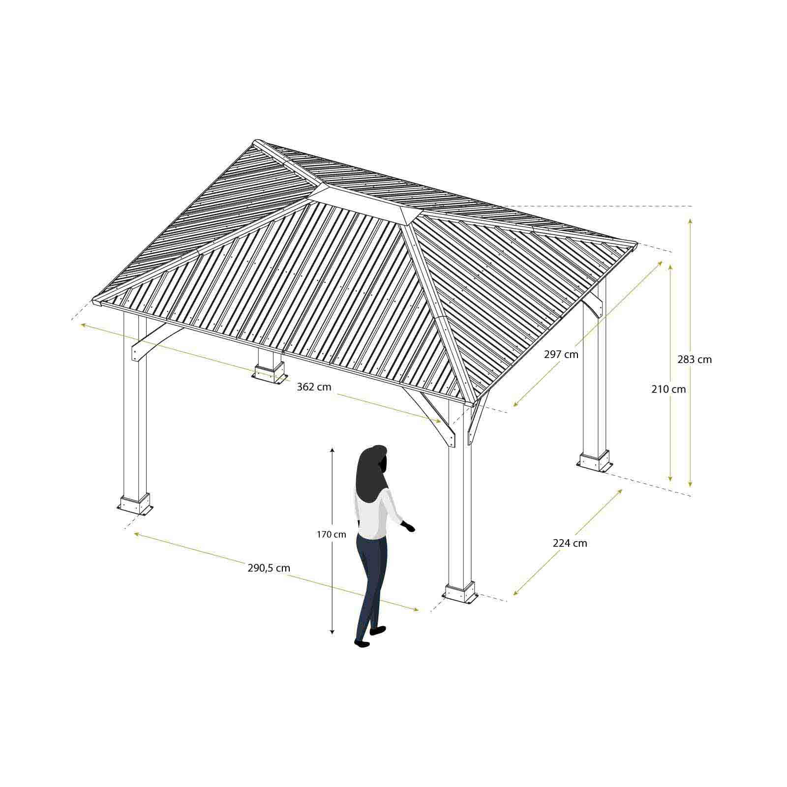 Cenador de madera 362x297x283 cm (10,72 m2) Tucson