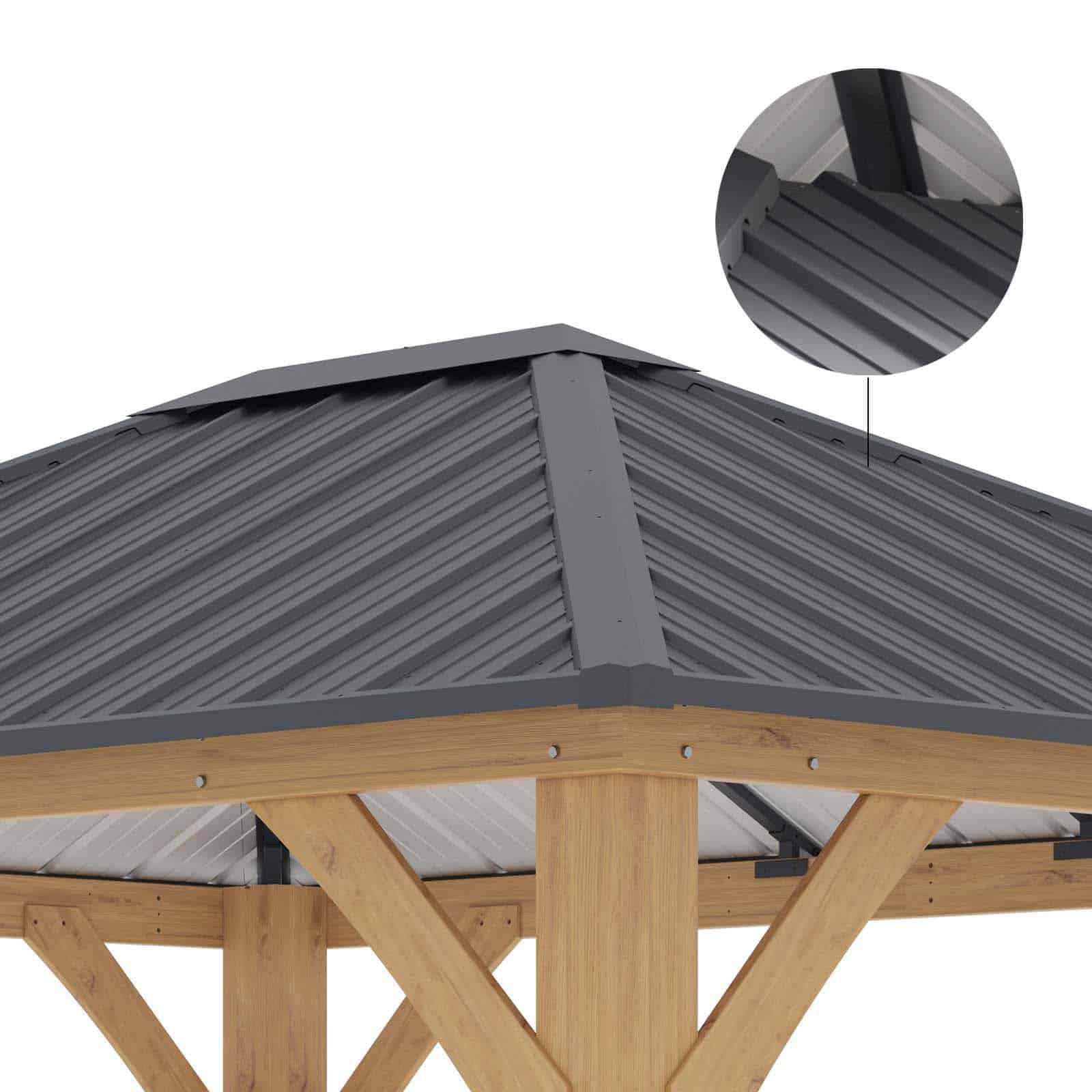 * Cubierta a cuatro aguas hecha de acero galvanizado resistente (0,40 mm) para protección contra el sol y la lluvia.
