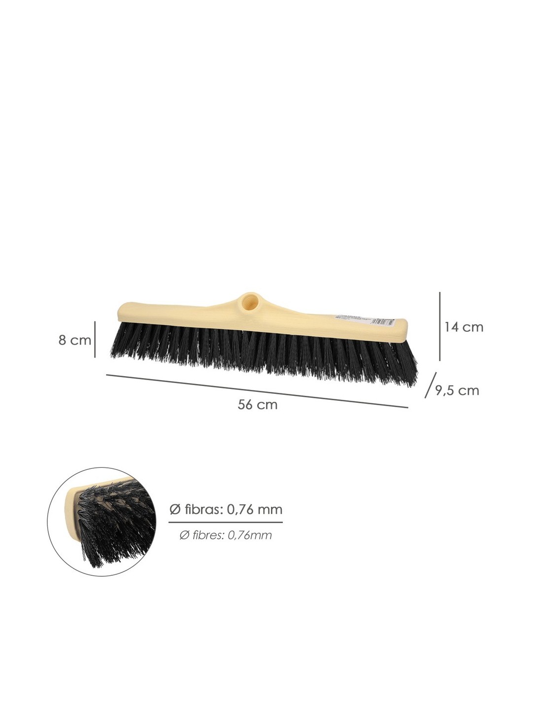 La eficacia del Cepillo Barrendero Industrial Fibra Rígida de Materiales de Casa está respaldada por su robustez y durabilidad. Su diseño permite que se utilice con un mango roscado no incluido, lo cual ofrece la flexibilidad para ajustarse a cualquier tamaño o preferencia personal. Además, el polipropileno de alta resistencia garantiza que este cepillo pueda soportar el uso intensivo sin perder su forma ni eficacia.