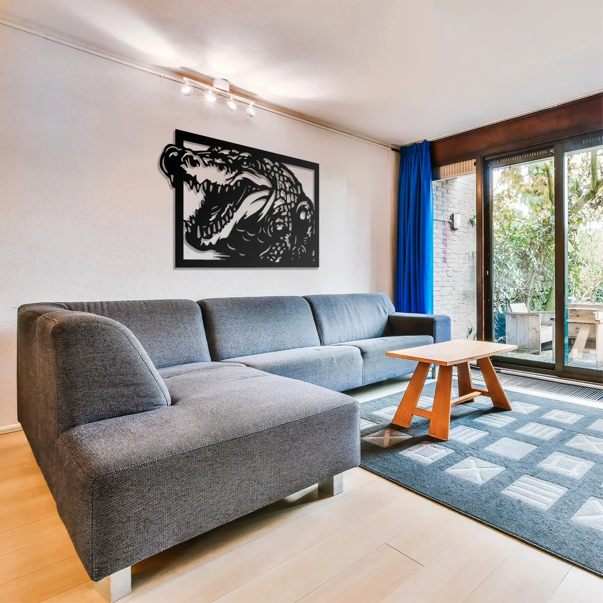 Atrévete con Cocodrilo, una obra que mezcla la elegancia del metal con una energía indomable. Este cuadro mural metálico no solo decora, marca territorio. Perfecto para quienes buscan un toque salvaje, moderno y fuera de lo común.