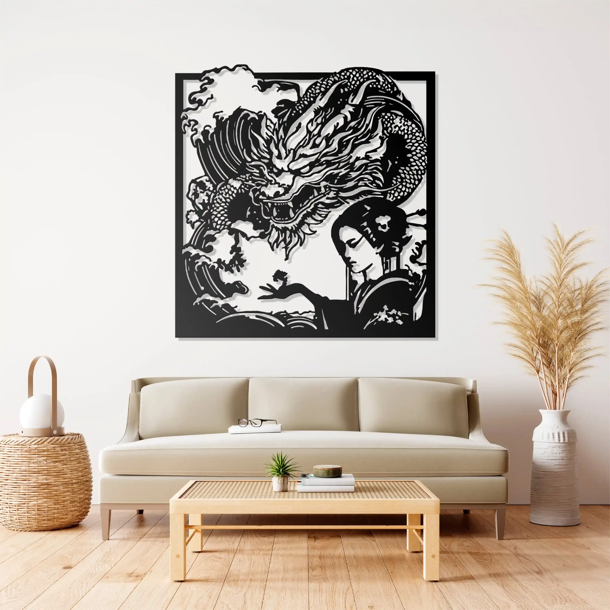 - Diseño Innovador y Profundo 🎨: Cada pieza de Geisha Tatsu es única, fusionando la delicada figura de la geisha con la majestuosa presencia del dragón («Tatsu» en japonés), con interpretaciones que van desde lo abstracto hasta siluetas metalizadas y detalles inspirados en la cultura japonesa. Su diseño se convierte en el punto focal de cualquier ambiente, invitando a la contemplación y la conversación.