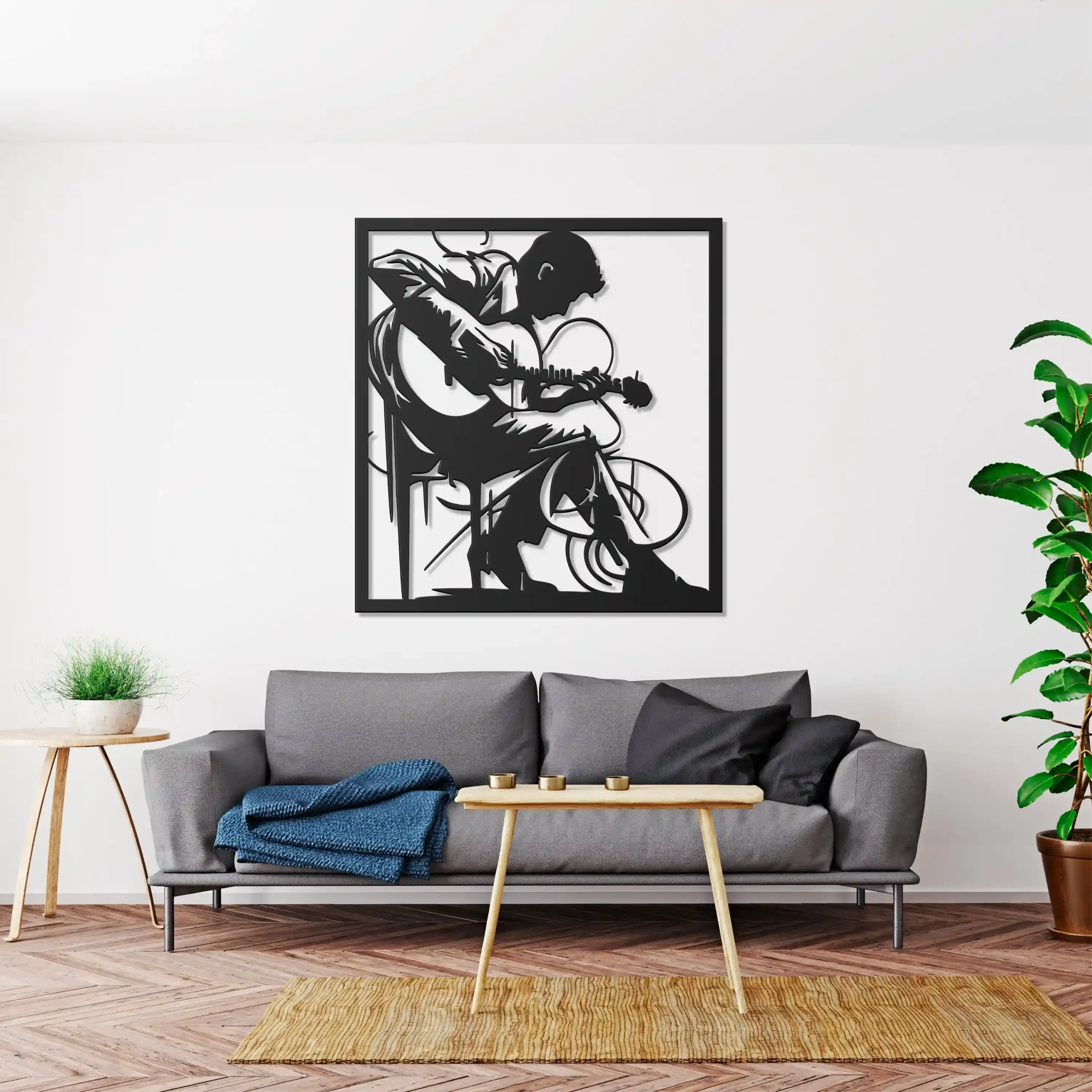 - La Sombra de una Melodía: 🎶 El cuadro se instala con una estudiada separación de la pared, creando un efecto 3D que proyecta la sombra del guitarrista. Es como el eco visual de su música, una vibración que aporta profundidad y vida a la obra.