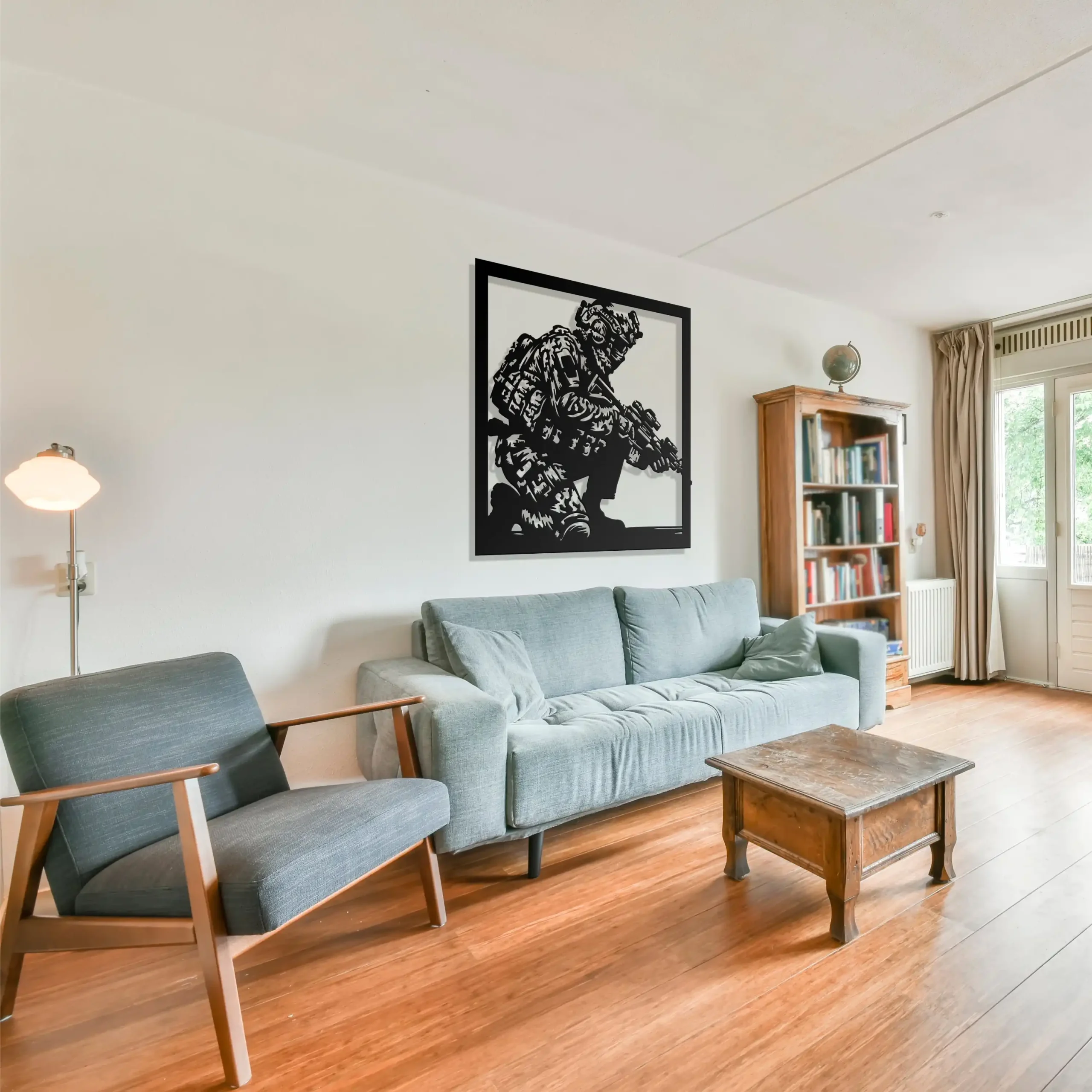 🎖️ Cuadro de Metal «Soldado»: ¡Honor, Valentía y Elegancia Moderna en tu Pared! ✨