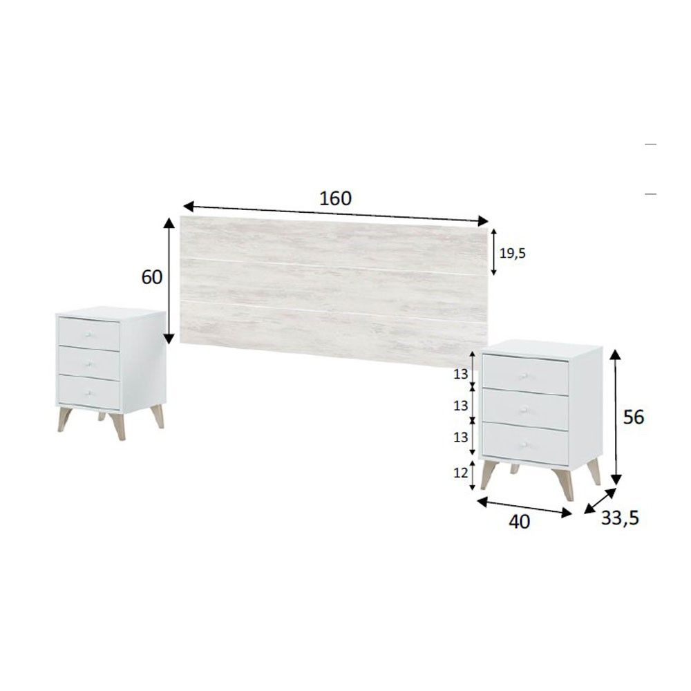 Descubre un dormitorio vintage que combina elegancia y funcionalidad. Nuestro conjunto incluye un cabecero colgante de cama, perfecto para camas de 135 o 150 cm, junto con dos mesillas de noche con tres cajones cada una. Este diseño minimalista y retro es ideal para aquellos que buscan un ambiente acogedor y sofisticado en su espacio de descanso.