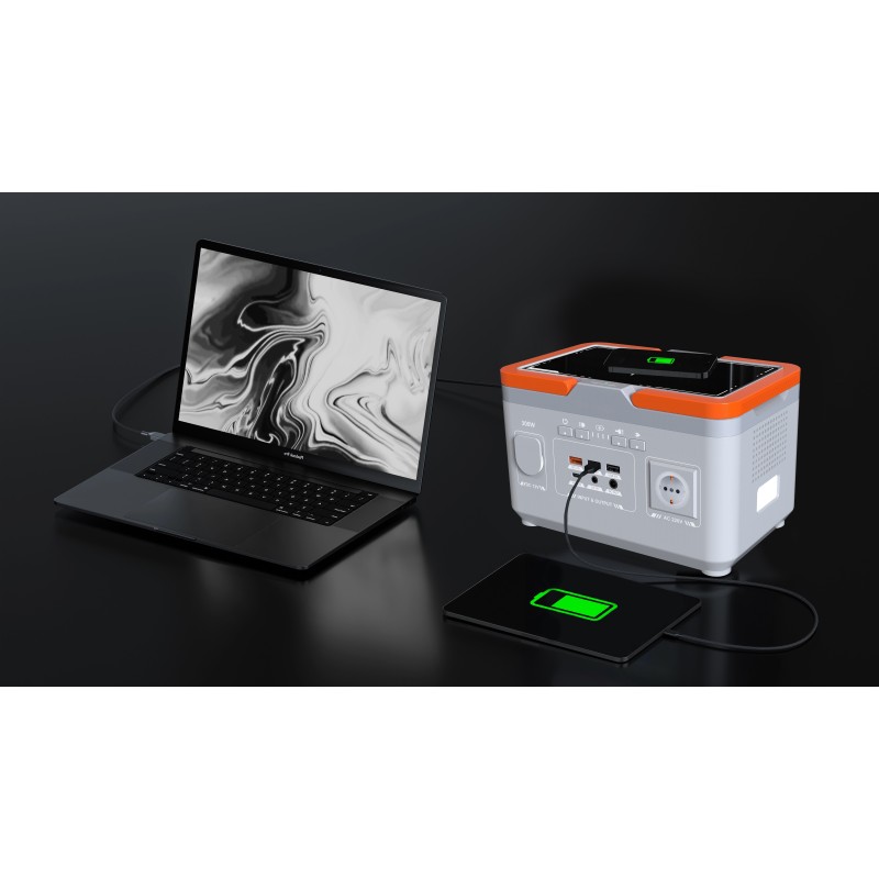 esta estación de energía LiFePO4 puede cargar hasta 5 dispositivos al mismo tiempo. Quick Charge 3.0 y USB PD (60 W) podrían ayudar a cargar en poco tiempo durante el campamento, los vehículos recreativos, la caza y el trabajo de oficina.