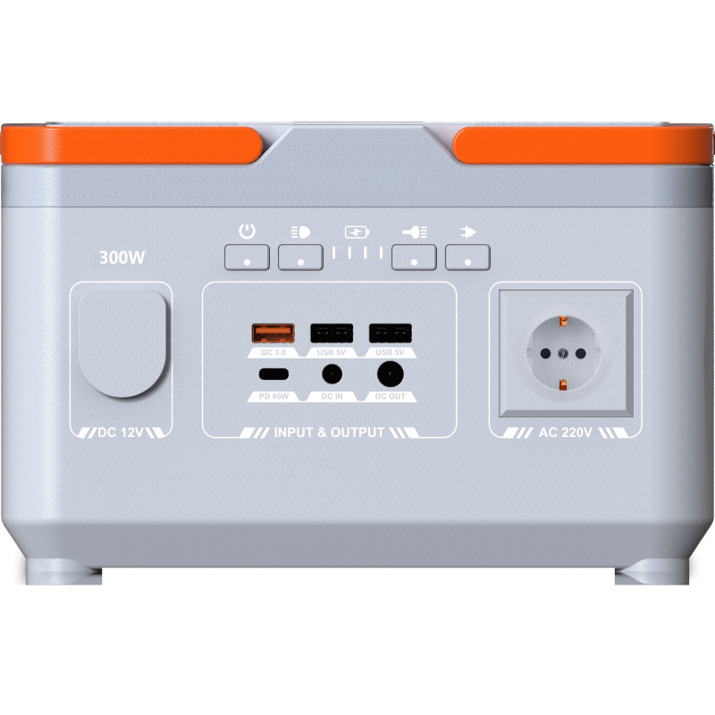 La central eléctrica portátil de 300 W utiliza celdas de batería LiFePO4 de grado automotriz para una excelente estabilidad térmica y seguridad.