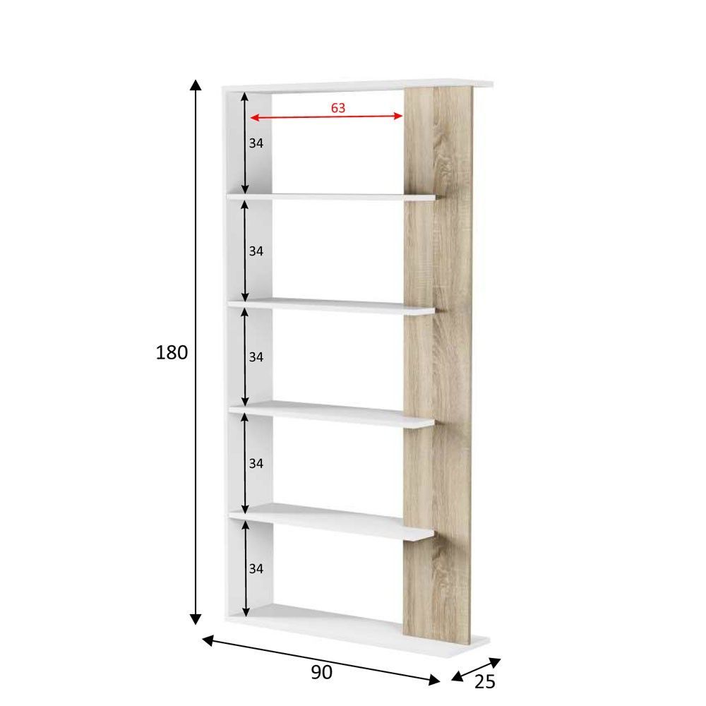 - Tamaño perfecto: Con una altura de 180 cm, ancho de 90 cm y fondo de 25 cm, esta estantería es lo suficientemente alta para separar espacios sin ocupar demasiado espacio.
