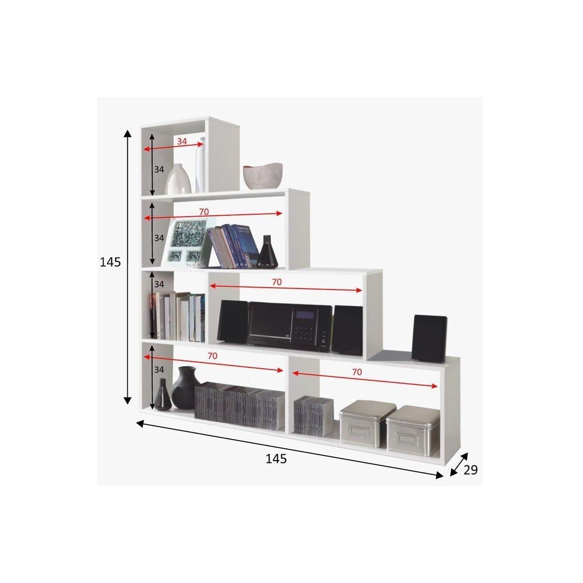 Con medidas de 145 cm de ancho y alto, y solo 29 cm de fondo, esta estantería es ideal para áreas donde el espacio sea limitado. Su diseño compacto no ocupa demasiado, pero ofrece una gran capacidad de almacenamiento.