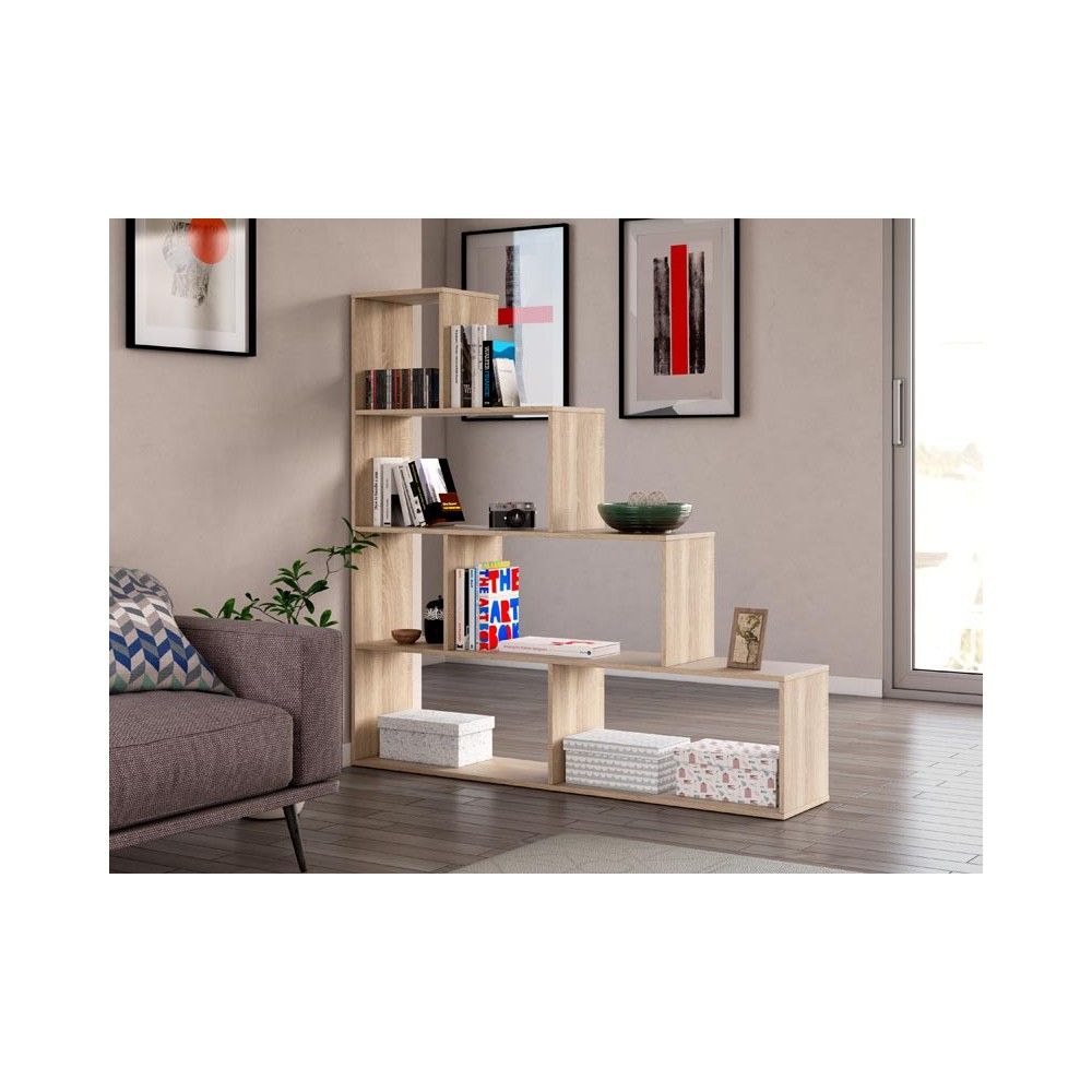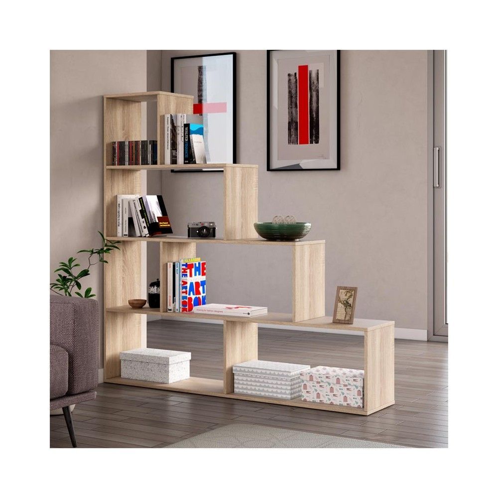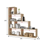 La estantería de pared Klum en color roble Canadian es una solución multifuncional y económica para cualquier habitación. Con su diseño único en forma de escalera, esta estantería no solo ofrece espacio de almacenamiento eficiente, sino que también puede ser utilizada como un elemento decorativo que separa ambientes.