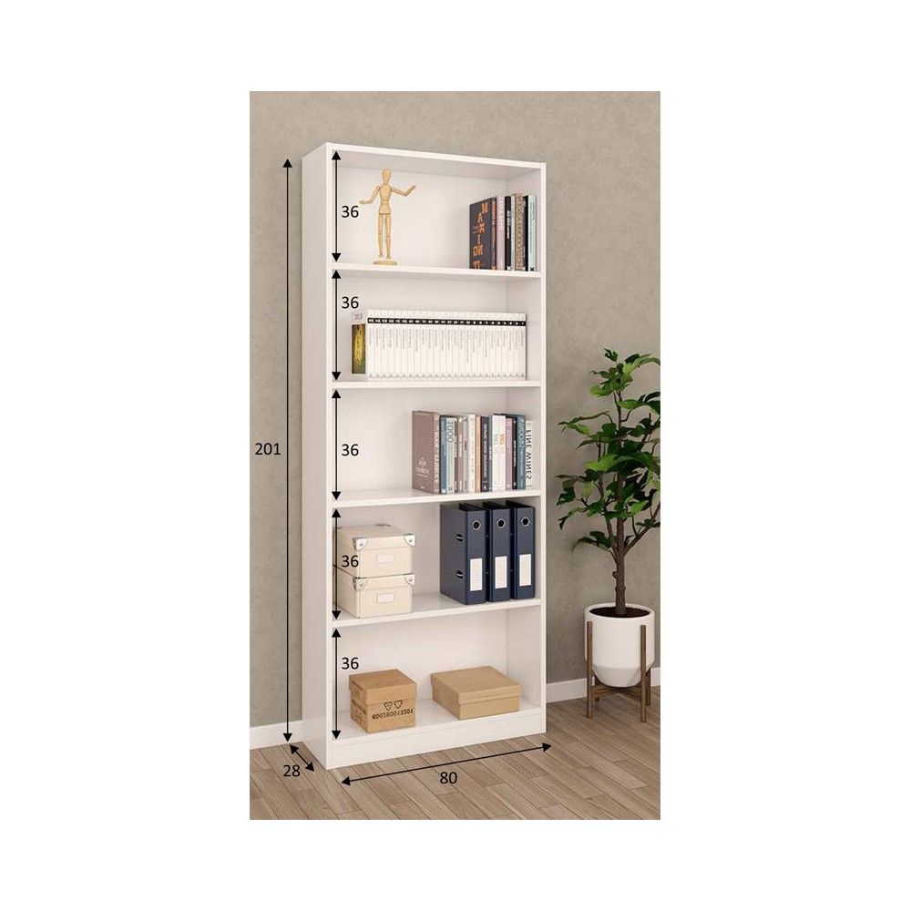 Con un fondo reducido de solo 28 cm, esta estantería es ideal para aprovechar cualquier hueco en la habitación. Sus dimensiones (80 cm ancho x 201 cm alto x 28 cm fondo) hacen que sea perfecta tanto para el salón como para las habitaciones.