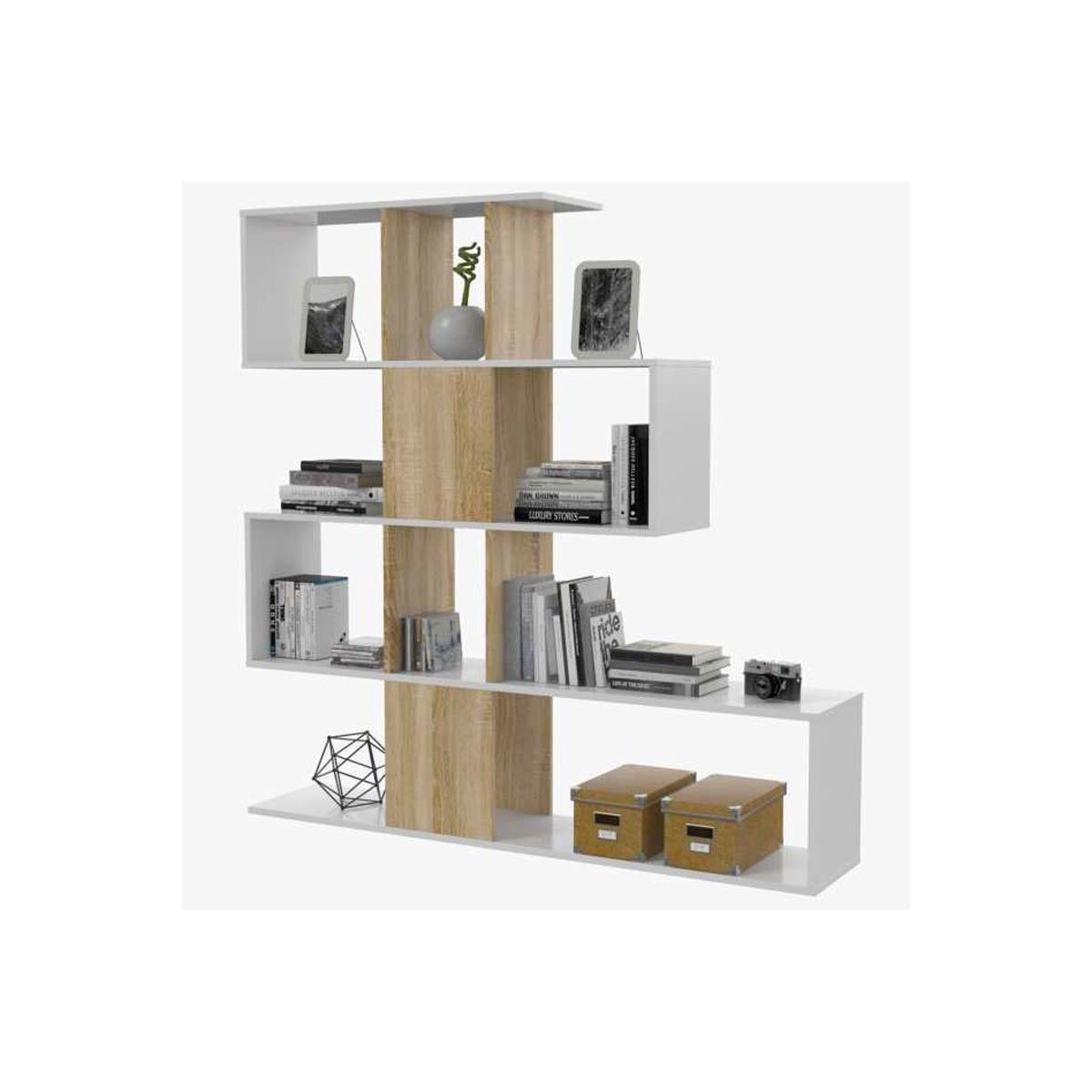 La estantería blanca Zig Zag es más que una simple pieza de mobiliario; es un elemento decorativo que maximiza el espacio. Con cuatro alturas, esta estantería ofrece una capacidad de almacenamiento excepcional para tus libros, fotografías o objetos favoritos.