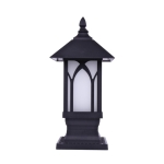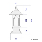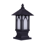 El farol viene con los cristales traslúcidos blancos. Estos cristales son totalmente lisos. Dos de los cristales están enmarcados haciendo un efecto de arco gótico, los otros dos son planos