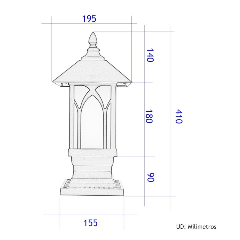 El Farol modelo BAITA es para sobreponer, válido para postes, columnas, cierres, terrazas, etc…