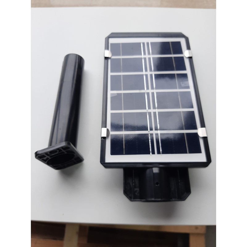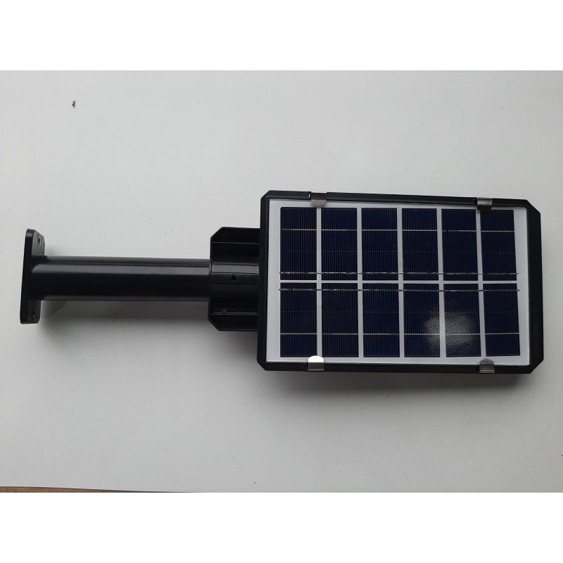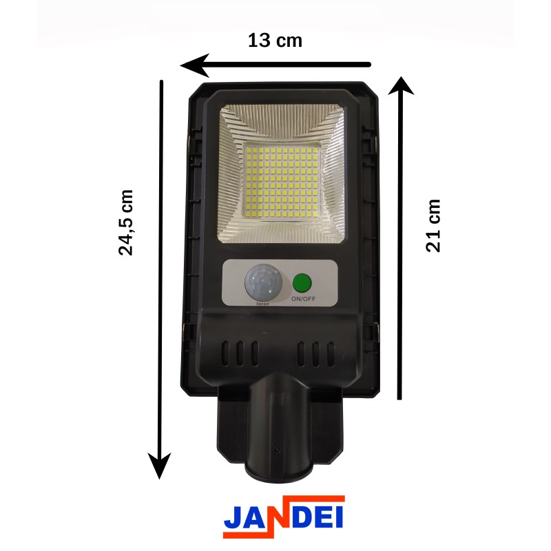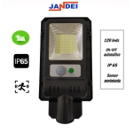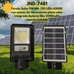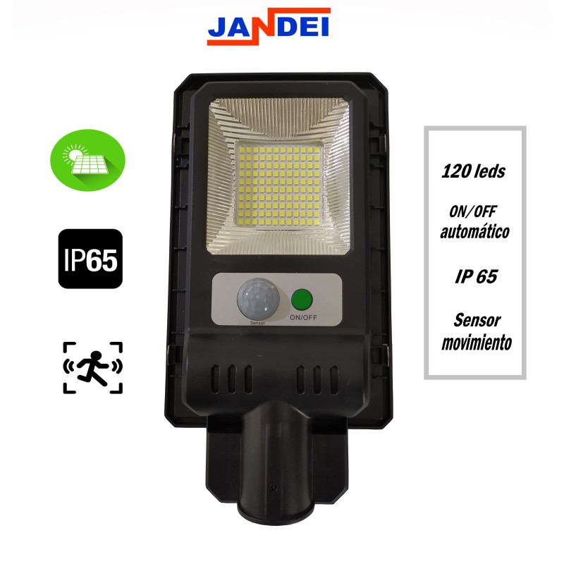Farola con placa solar policristalina integrada, 120LEDs, sensor de movimiento y batería de litio con una capacidad máxima de 2000 mAh.