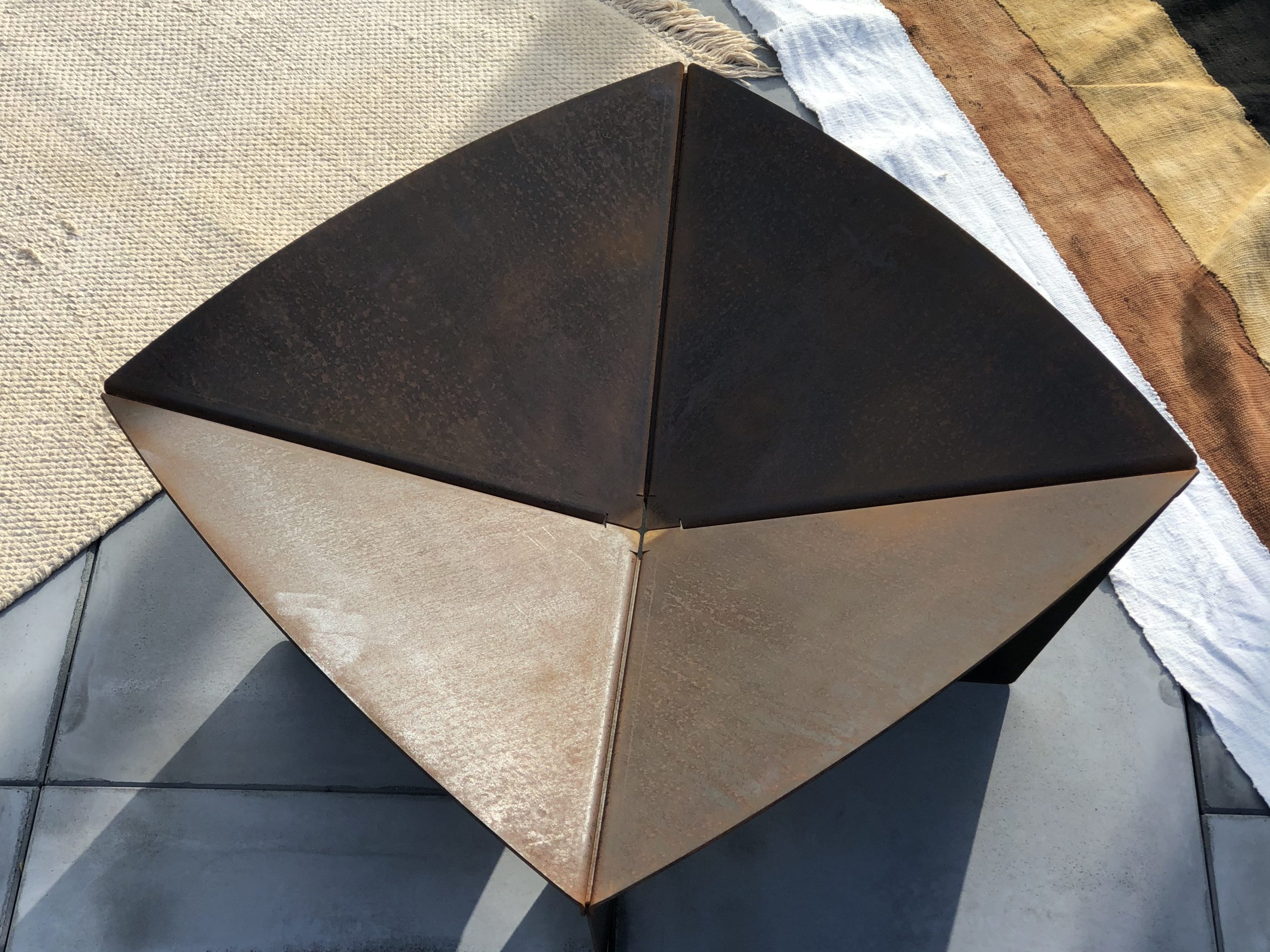 El Fire Pit SYRTIS, un objeto único en su especie, se caracteriza por su estructura remarcada y líneas precisas que le otorgan una apariencia mecánica y robusta. Transformado en un mini cráter, ilumina y calienta tu espacio al aire libre con un toque de elegancia industrial. Fabricada con acero Corten, resistente a los efectos corrosivos del tiempo, tres veces más que el acero común, este fuego pit se convertirá en un elemento esencial para tus noches bajo las estrellas. Disponible también en una versión de acero con revestimiento térmico negro. Su proceso de formación de pátina le otorga un aspecto único y envejecido, que lo convierte en una pieza artística atemporal.