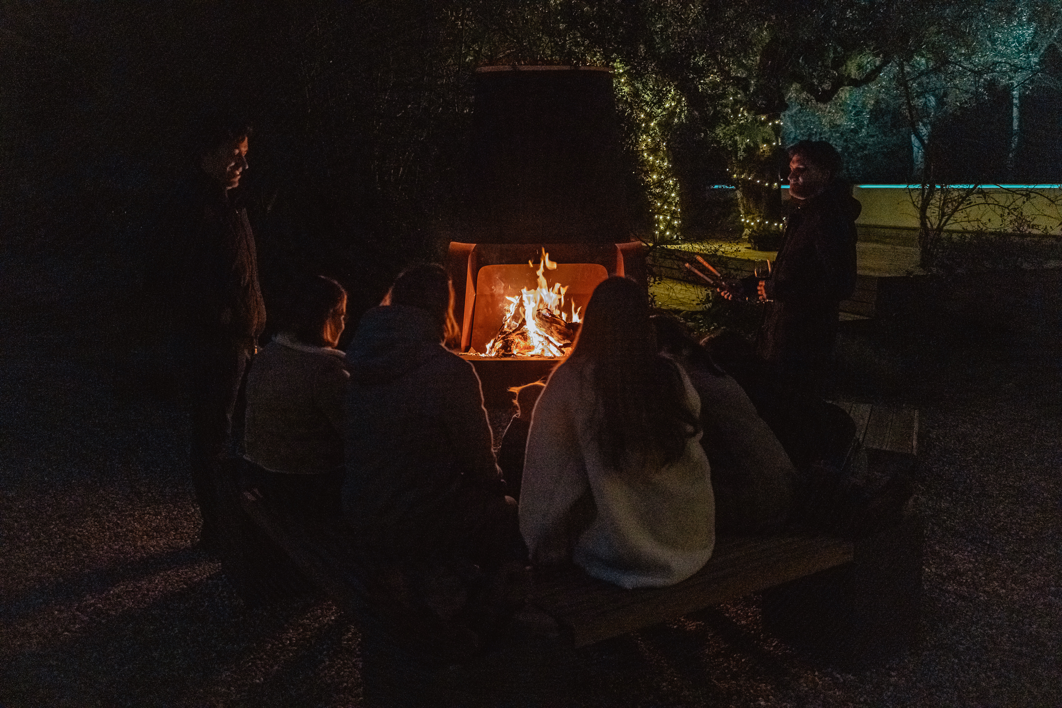 Zona de fuego central que proporciona calor e iluminación cálida