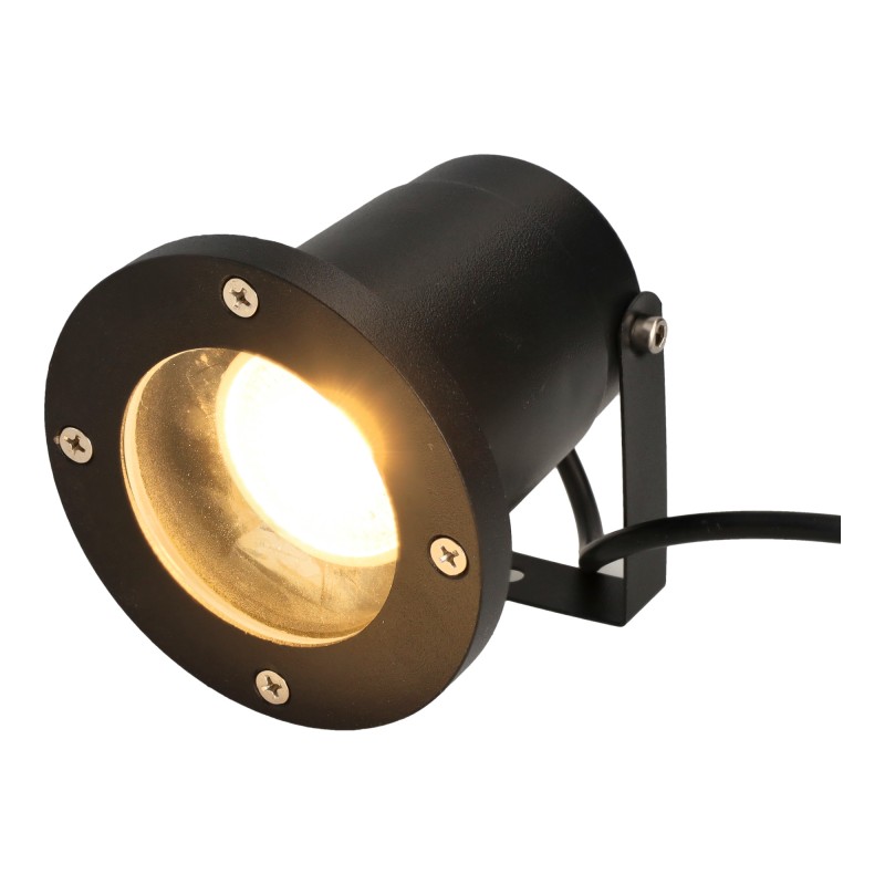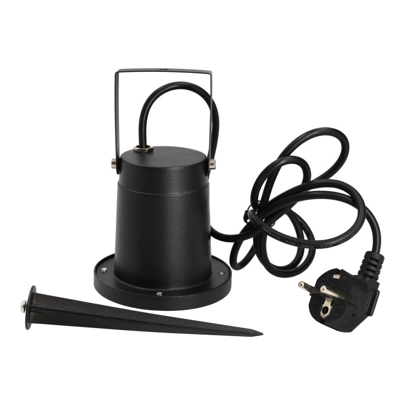 Este modelo viene con pincho integrado que permite una instalación rápida y segura directamente en la tierra o césped. No requiere herramientas especiales, solo ubicar el punto deseado y colocar. Además, el cable de 1,50m con enchufe facilita la conexión directa a la corriente, ahorrando tiempo y complicaciones. La estructura incluye un brazo en forma de «U» que permite ajustar la inclinación del haz de luz para dirigirlo con precisión. La carcasa, en color negro, está fabricada con materiales resistentes que garantizan durabilidad y buena presencia incluso en condiciones climáticas adversas.