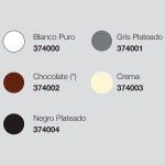 Colores: Blanco puro, Gris plateado, Chocolate, Crema, Negro plateado.