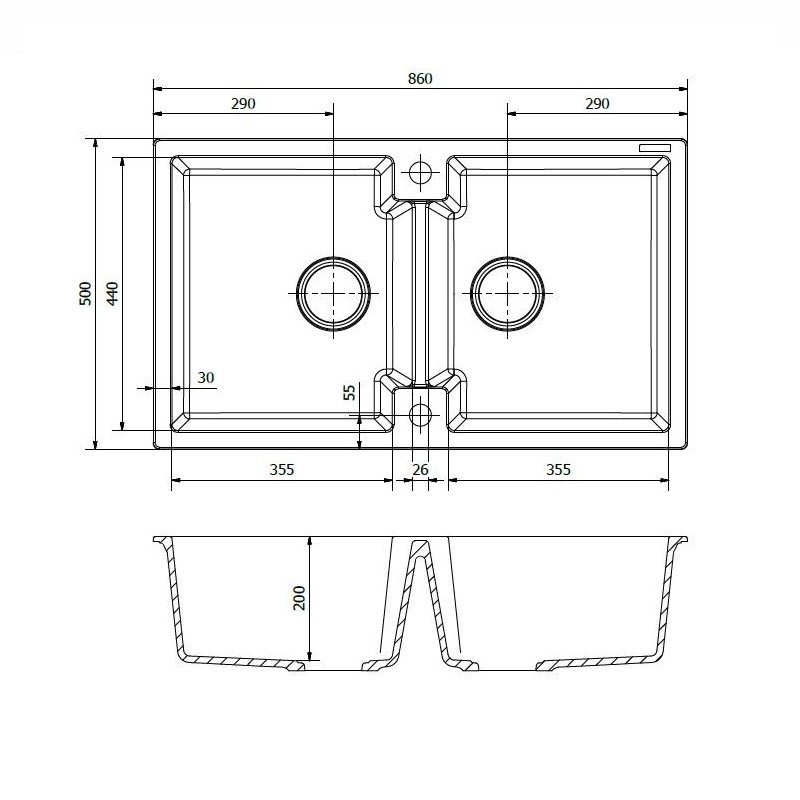 – Fregadero de dos senos rectangulares.
