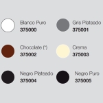 Colores: Blanco puro, Gris plateado, Chocolate, Crema, Negro plateado, Negro puro.