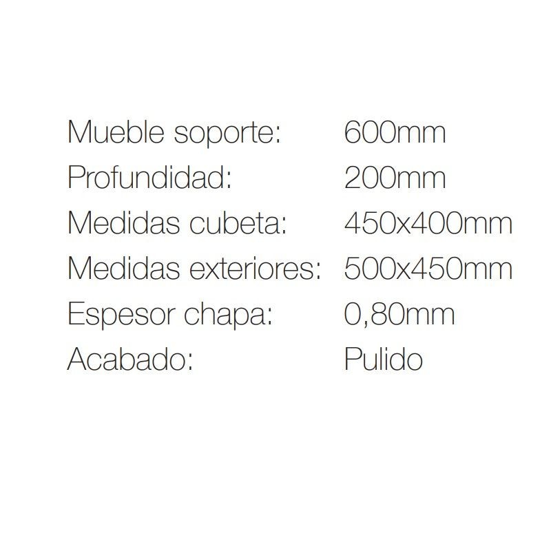 – Medidas de la cubeta: 45 x 40 x 20 cm (largo x ancho x profundo).