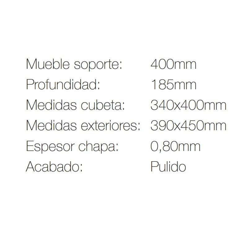 – Medidas de la cubeta: 34 x 40 x 18,5 cm (largo x ancho x profundo).