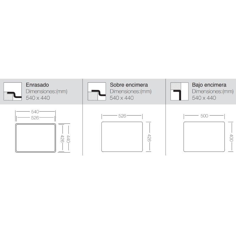 Posibilidad de montaje sobre encimera, bajo encimera o enrasado.