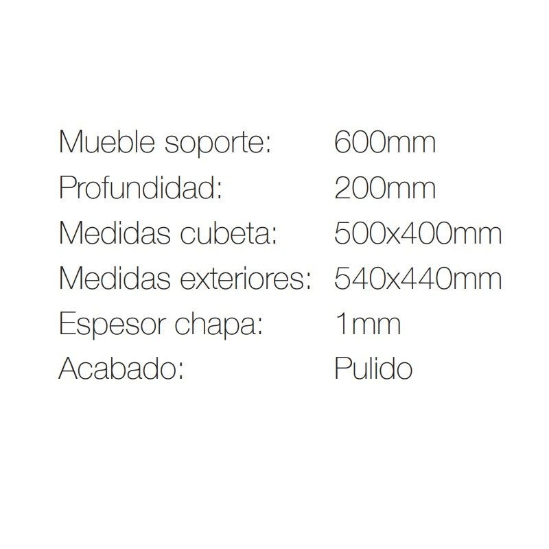 – Medidas de la cubeta: 50 x 40 x 20 cm (largo x ancho x profundo).