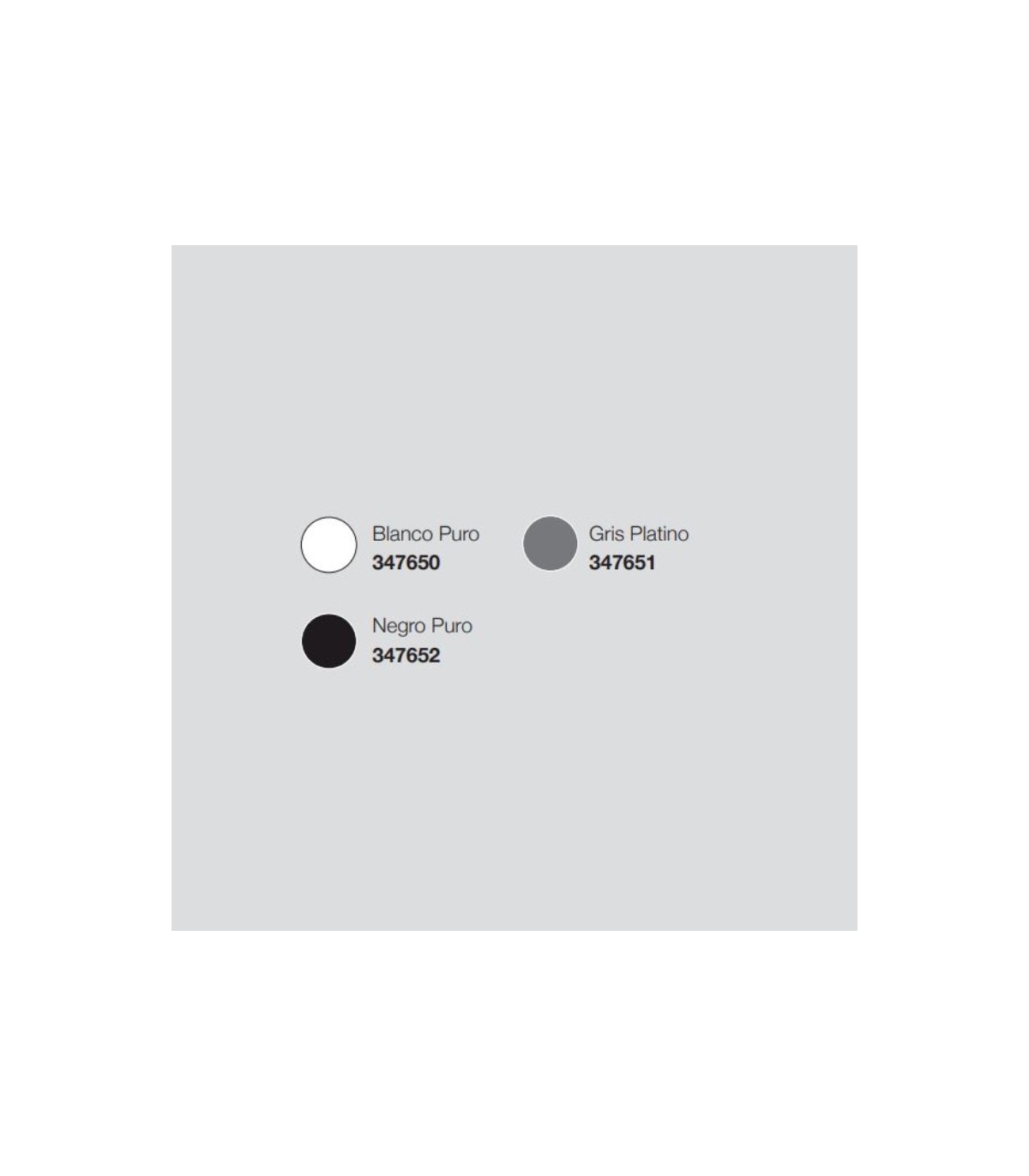Colores: Blanco puro, Gris Platino y Negro puro.