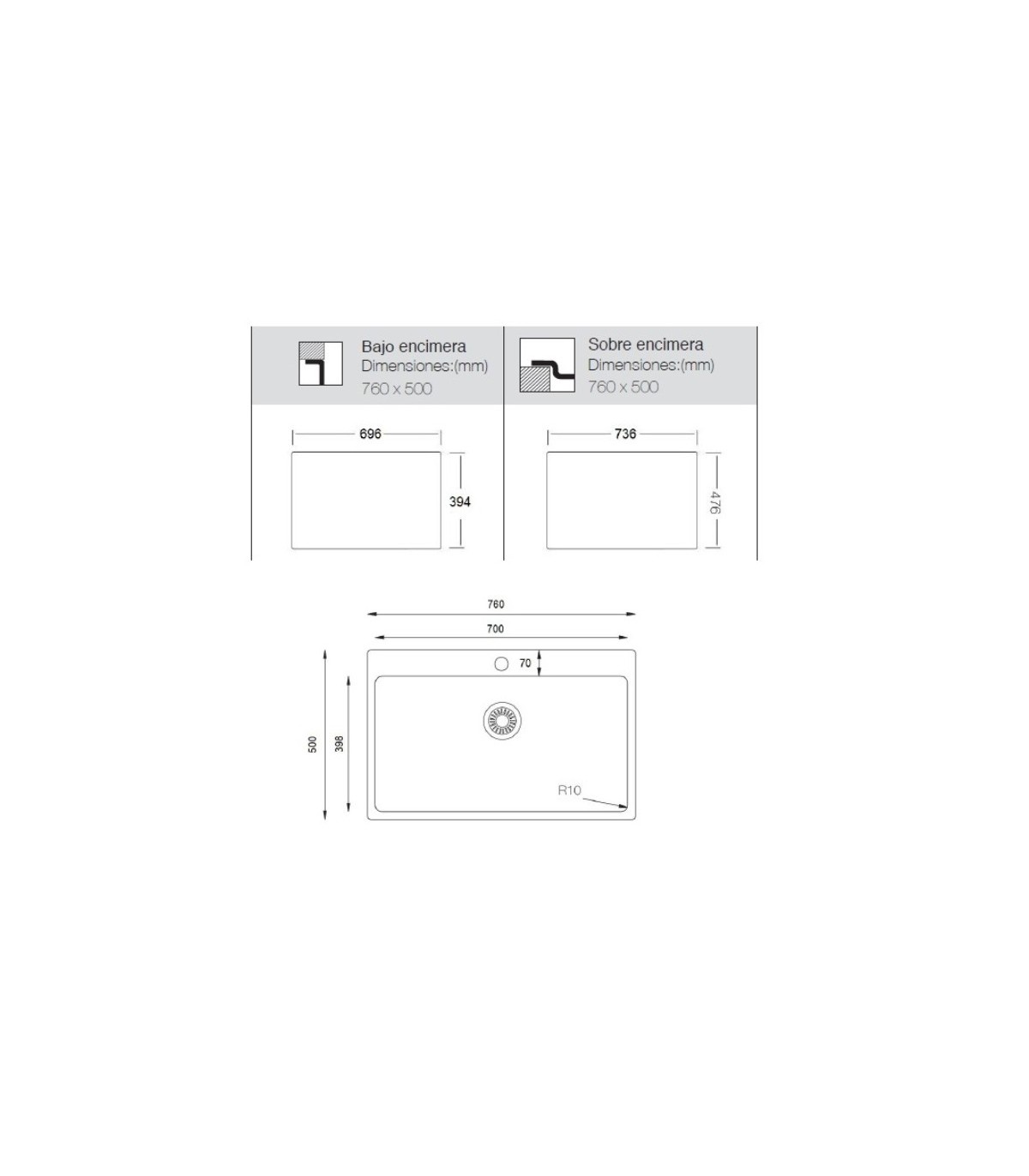 FREGADERO DE COMPOSITE BAJO ENCIMERA MALTA 7650