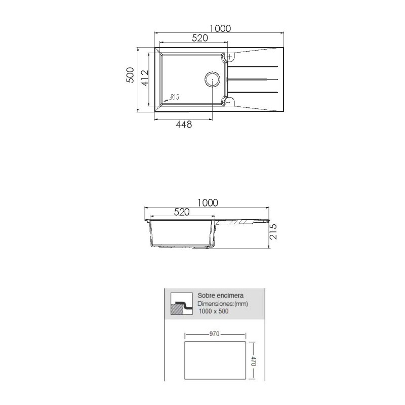 FREGADERO DE COMPOSITE SOBRE ENCIMERA MALTA 1000
