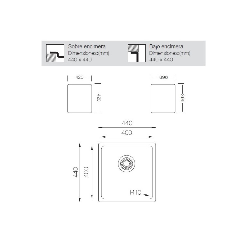 – Fregadero de un seno cuadrado.