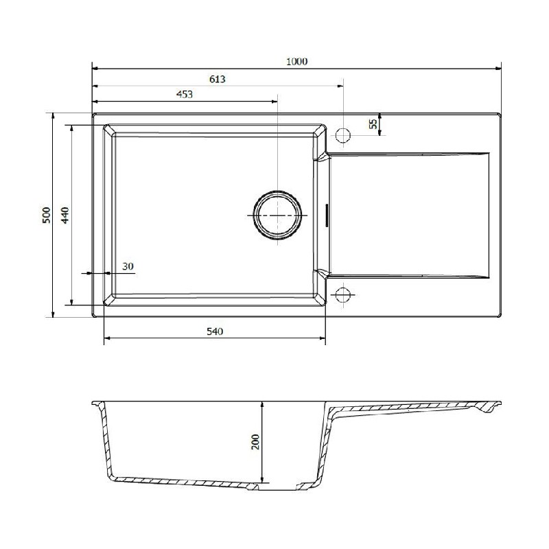 Fregadero de granito sobre encimera de cocina AMSTERDAM 540