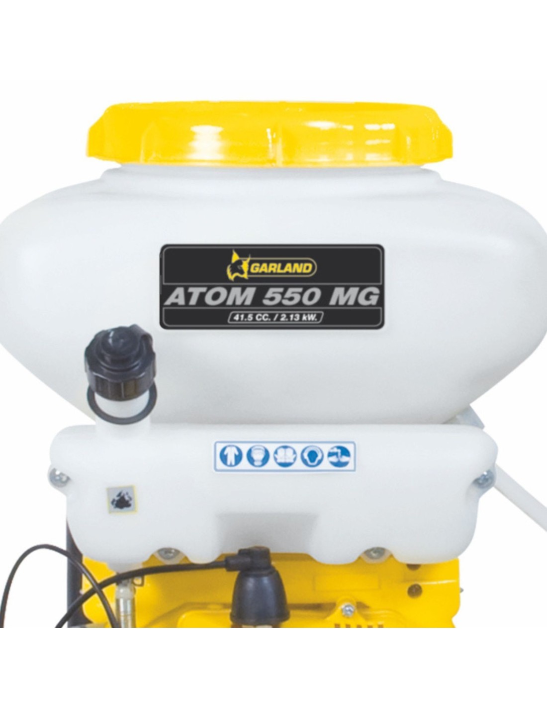 El Fumigador gasolina ATOM 550 MG mochila Garland es un instrumento que combina potencia y precisión en una sola unidad. Su motor de 41,5 cc y 2,9 CV de potencia garantiza una eficiencia óptima para la aplicación de químicos tanto en líquido como en polvo. Además, su diseño de mochila lo hace extremadamente manejable y cómodo de usar durante largas jornadas laborales.
