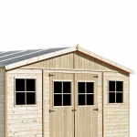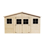 El garaje Vladimir ofrece un espacio seguro y amplio de 13,24 m² perfecto para guardar tus herramientas de jardín, equipos deportivos o tu vehículo, protegiéndolo de las inclemencias climáticas y posibles daños. Su estructura rígida y resistente, fabricada con paneles de madera de pino nórdico sin tratar y certificada PEFC, garantiza su durabilidad.
