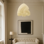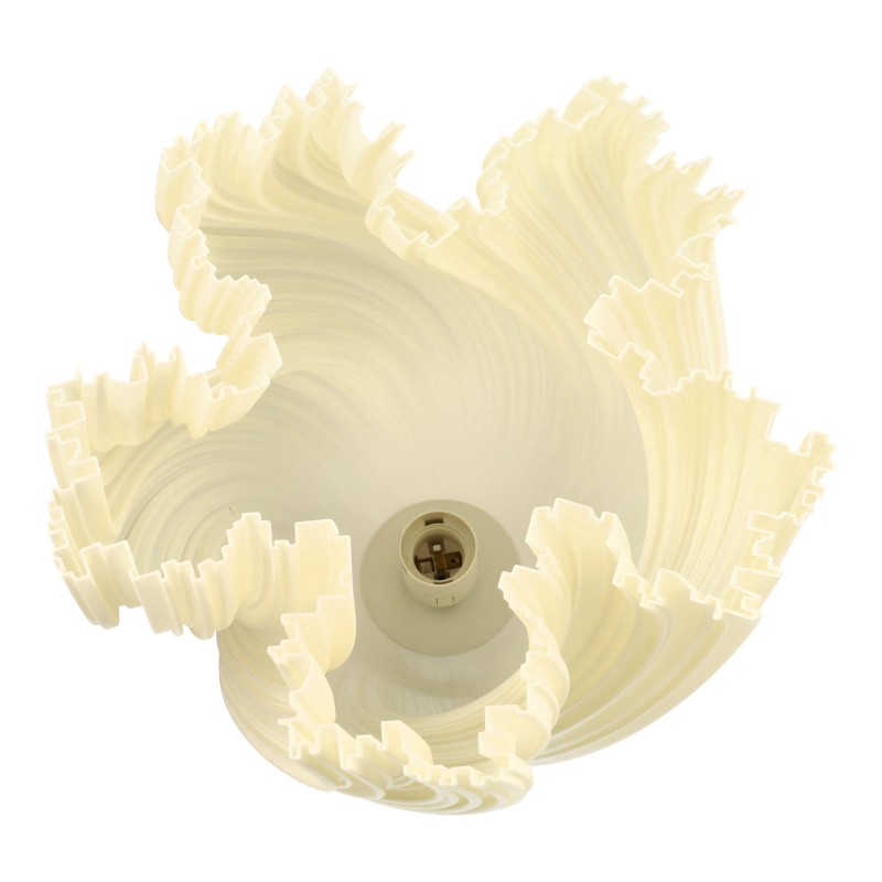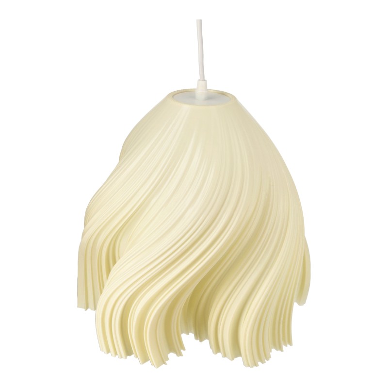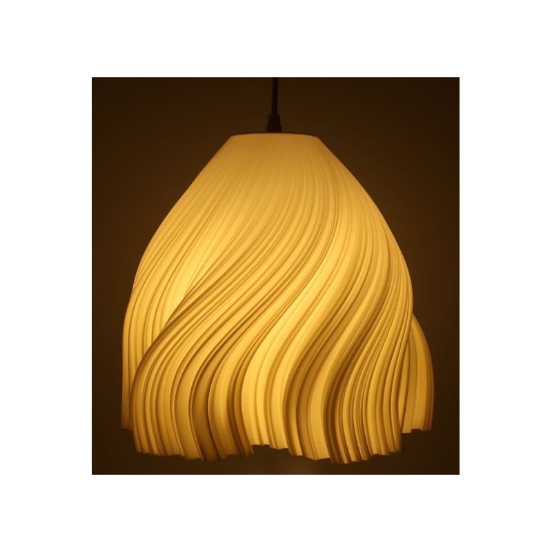 Aporta un toque artístico, moderno y ecológico a tus espacios con esta lámpara colgante blanca impresa en 3D. Una pieza única que combina diseño, tecnología y funcionalidad. Su silueta ondulada, inspirada en formas orgánicas, crea un elegante juego de luces y sombras al encenderse. Genera una atmósfera cálida y sofisticada en cualquier ambiente.