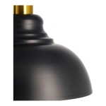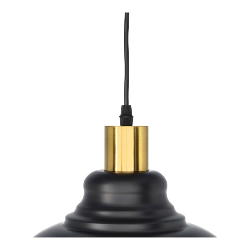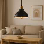 Inspirada en el estilo industrial y retro, esta lámpara colgante combina diseño clásico con acabados modernos. Su estructura de metal en color negro con detalles en acabado latón aporta carácter y personalidad a cualquier espacio. Con un diámetro de 29 cm, es perfecta para iluminar cocinas, comedores o locales con un toque vintage.