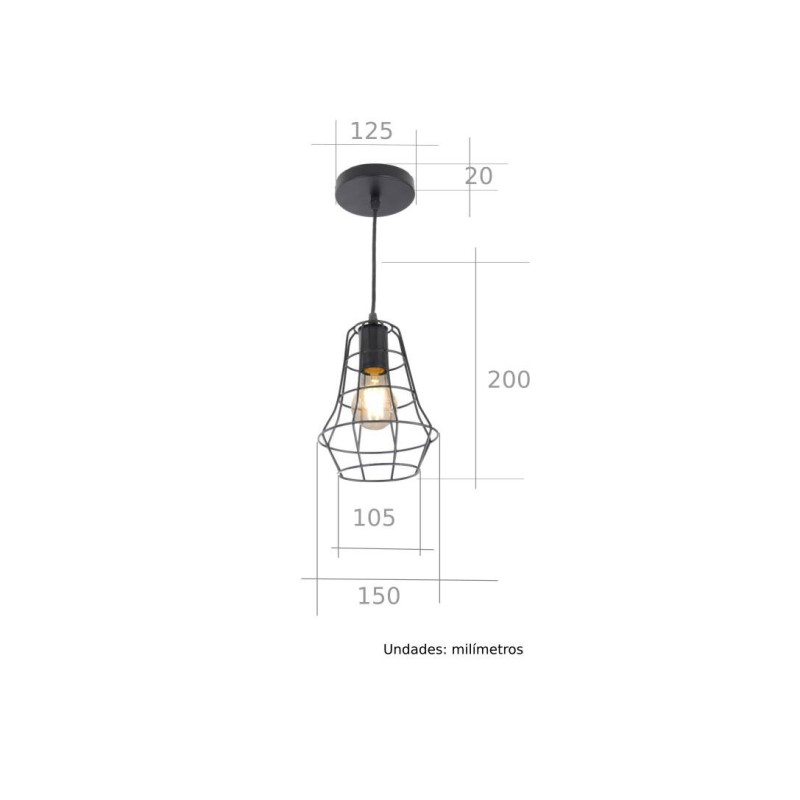 Fabricada con materiales de alta calidad, esta lámpara colgante presenta un cuerpo de metal resistente que garantiza su durabilidad a lo largo del tiempo. El material metálico también le confiere un aspecto sólido y robusto, lo que la convierte en una opción ideal para aquellos que buscan una iluminación con un toque industrial