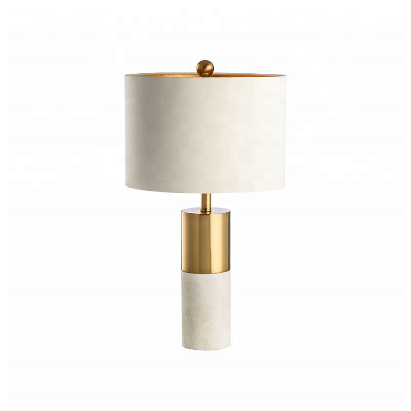 Lámpara NASHIRA, sobremesa, mármol blanco, pantalla blanca